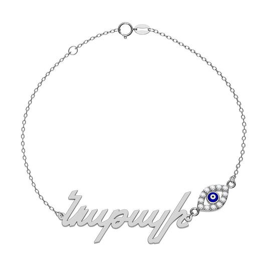 Armenian Personalized Name Bracelet With Round Evil Eye Charm
