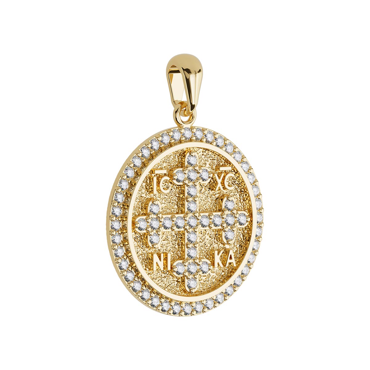 Round Byzantine Style Konstantinato Diamond Cross Pendant