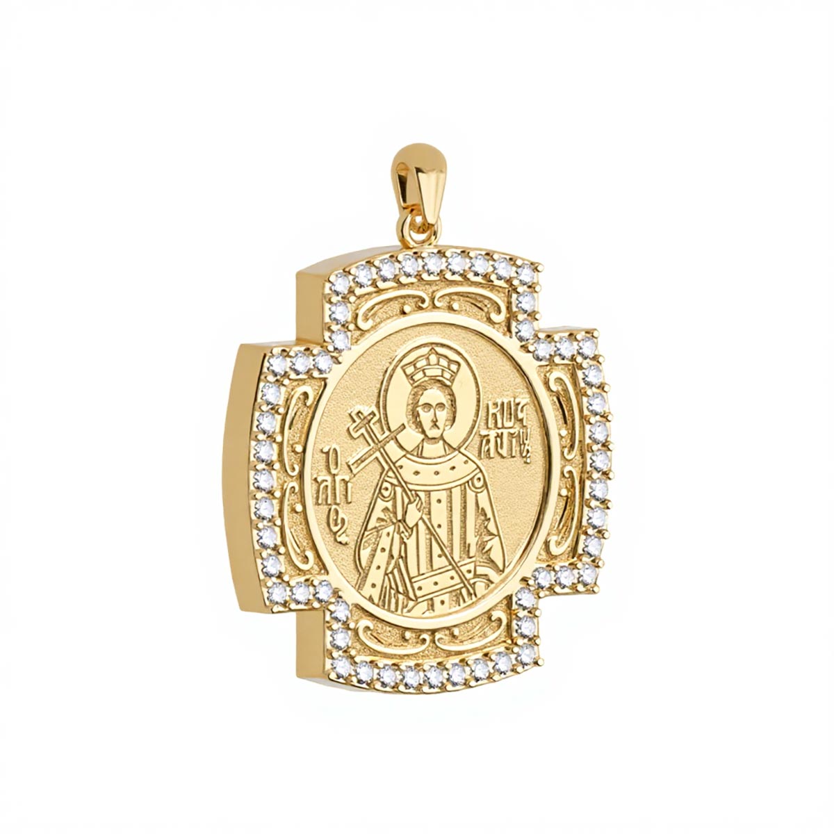 Custom Greek Orthodox Icon Pavé Cross Frame Pendant