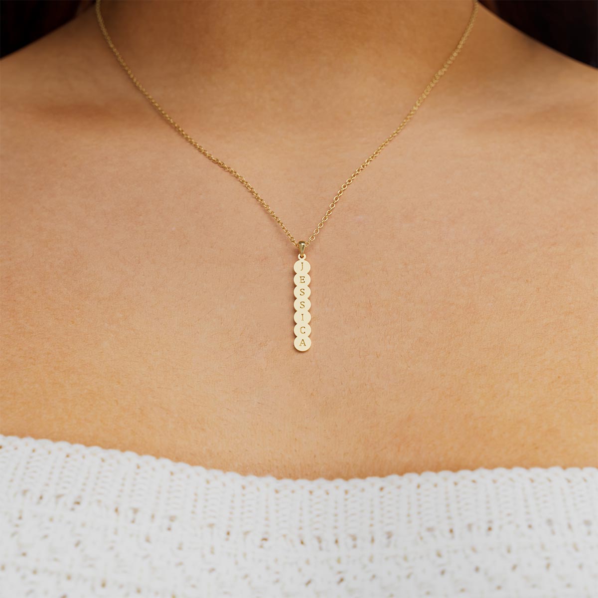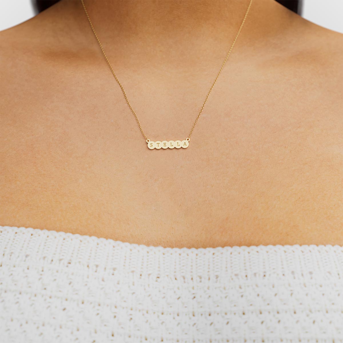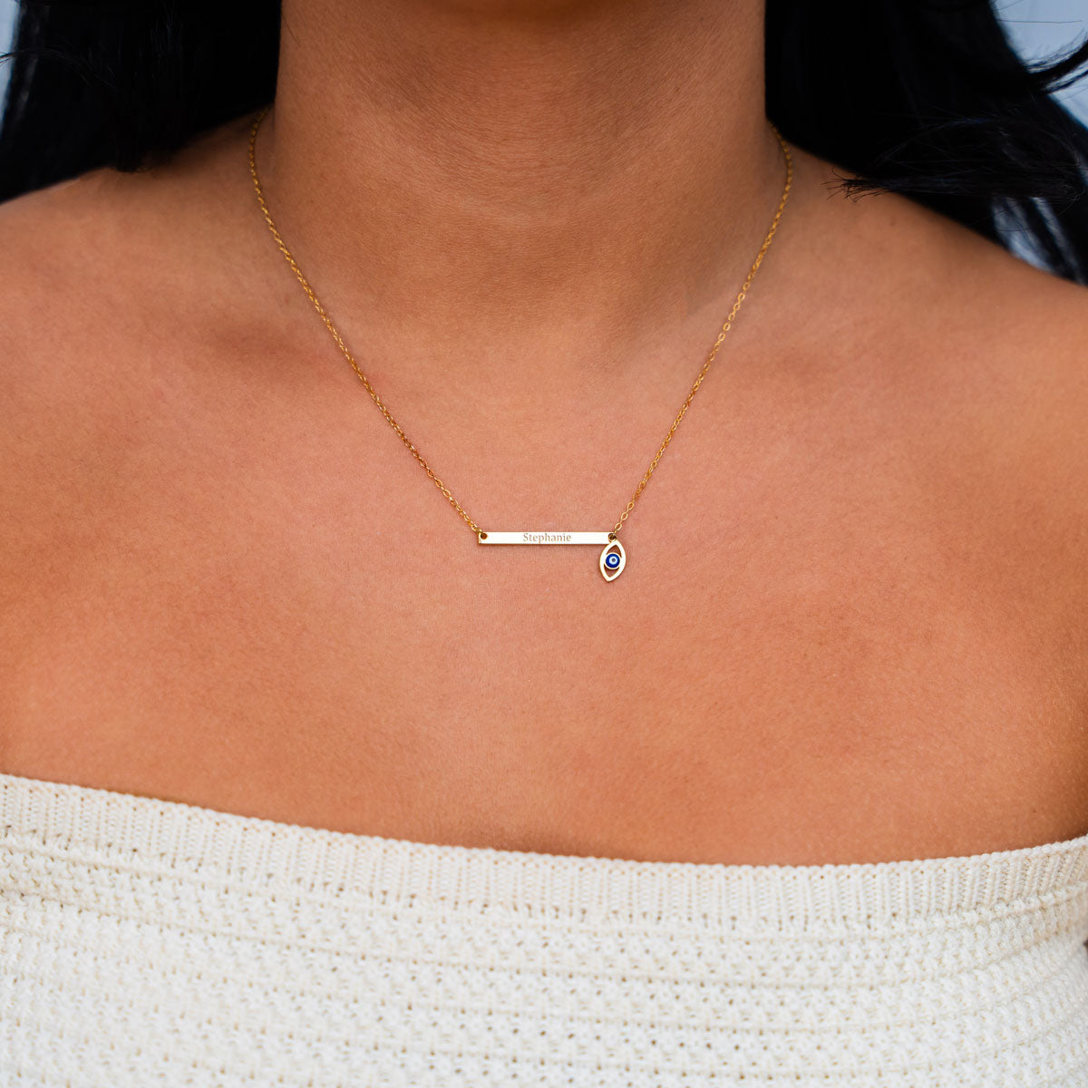 Narrow Horizontal Bar Necklace with Engraving and Evil Eye Charm