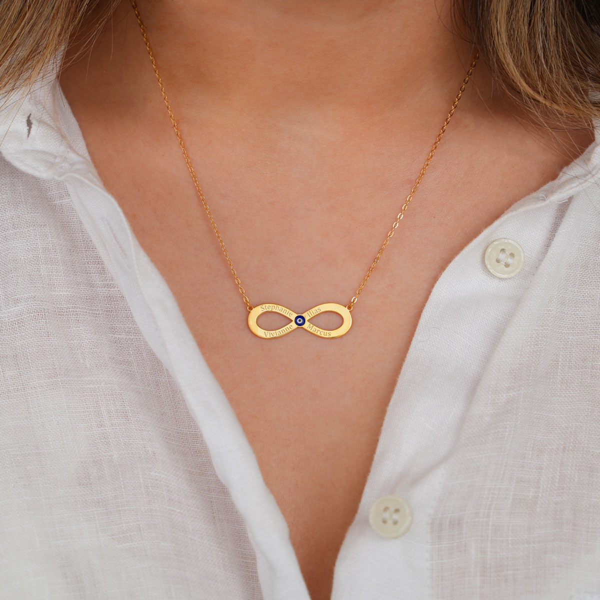 Personalized 2 Name Necklace With Round Enamel Evil Eye