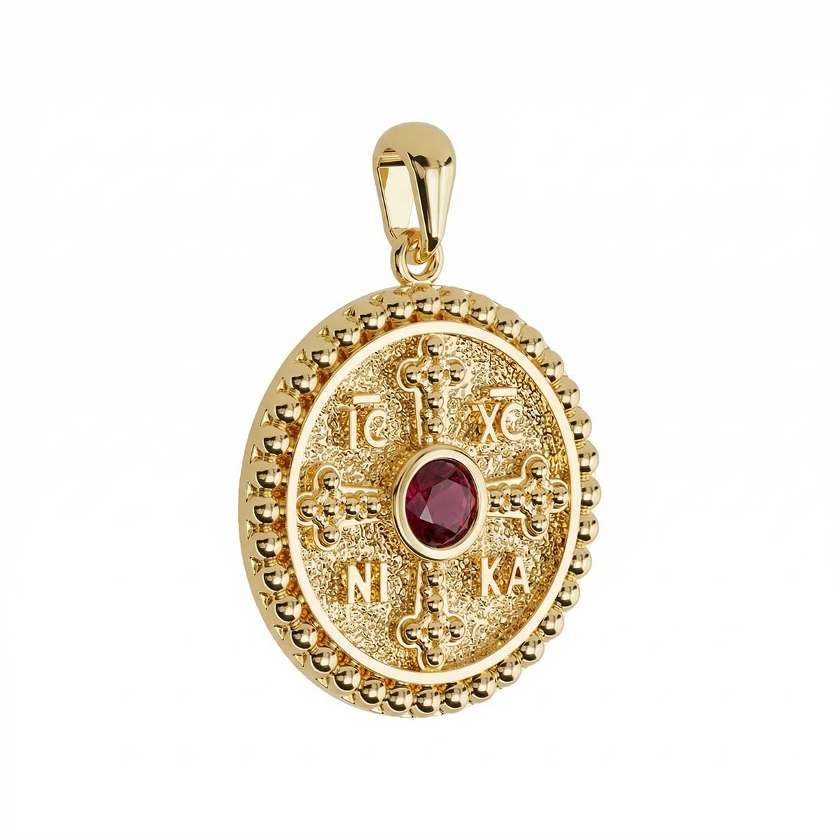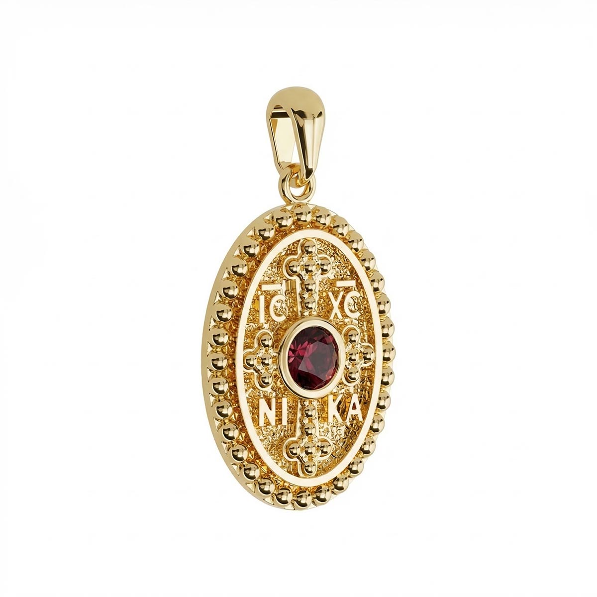 Oval Byzantine Style Konstantinato Pendant with Ruby Center