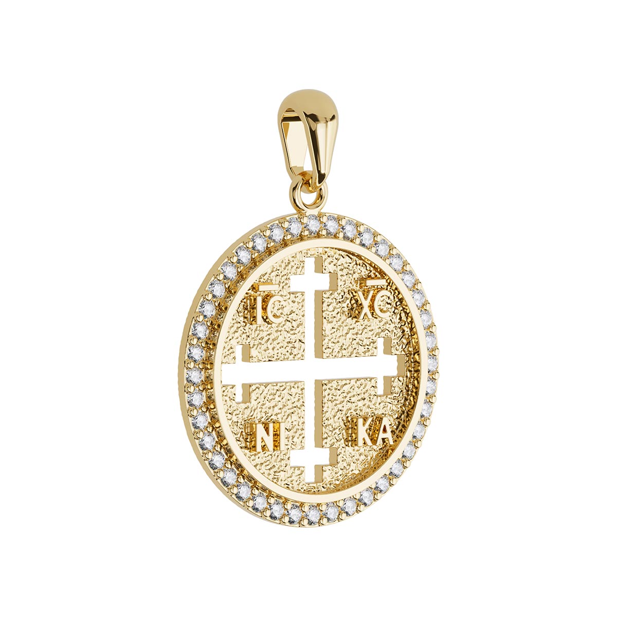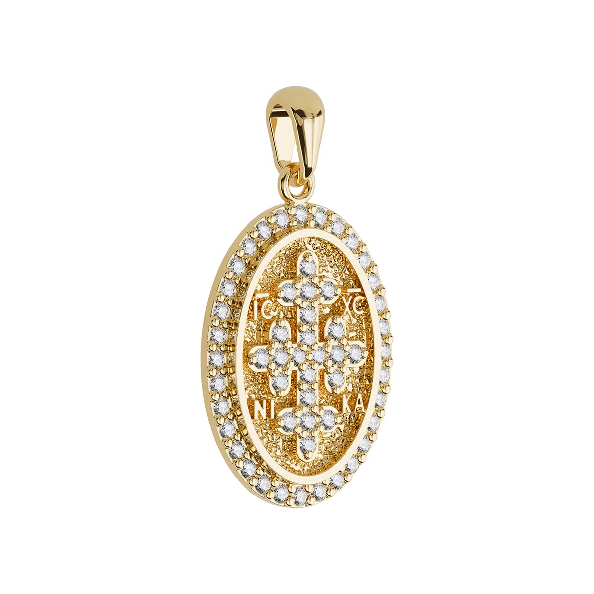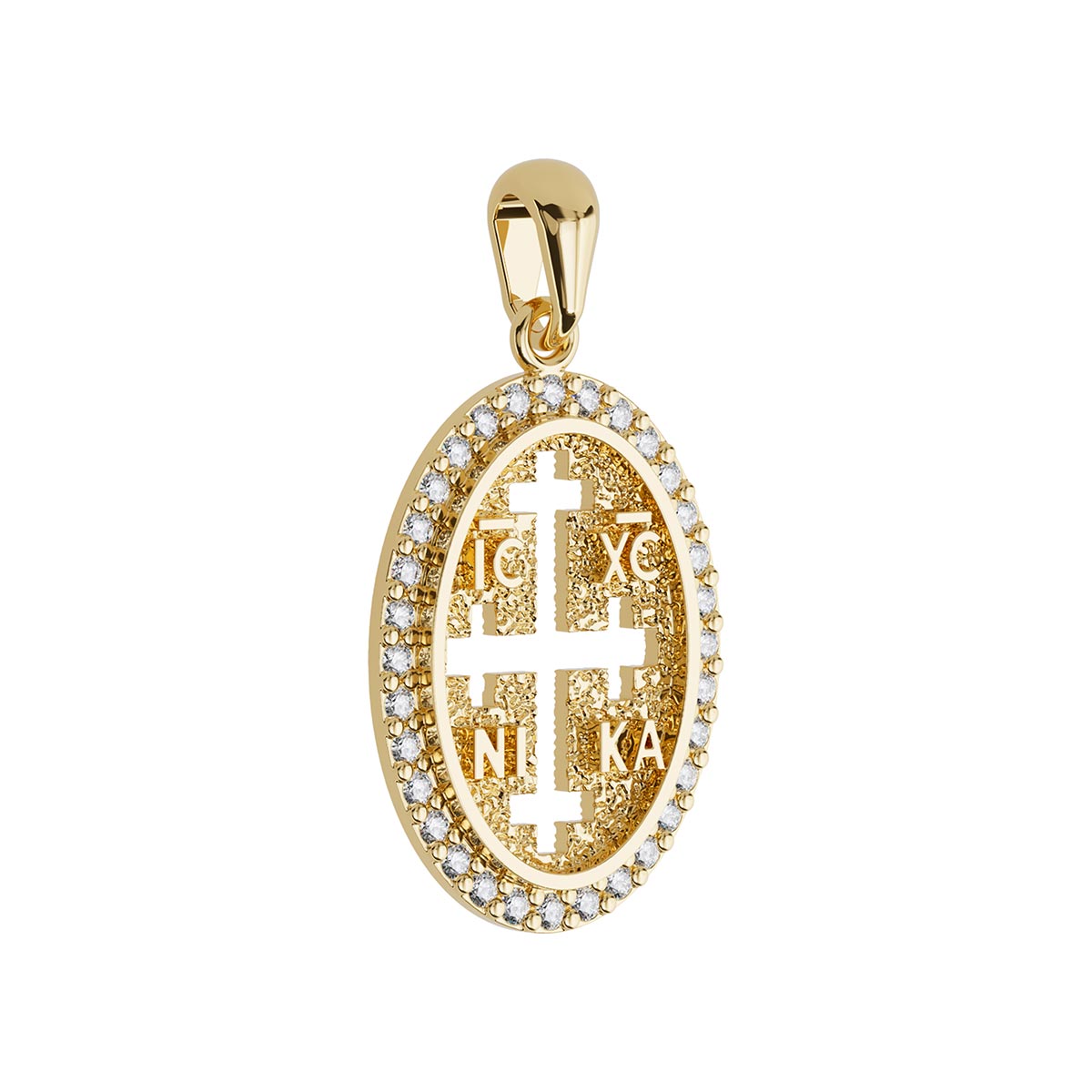 Oval Byzantine Style Konstantinato Diamond Cross Pendant