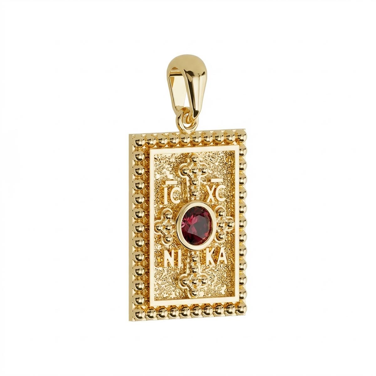 Tag Byzantine Style Konstantinato Pendant with Ruby Center