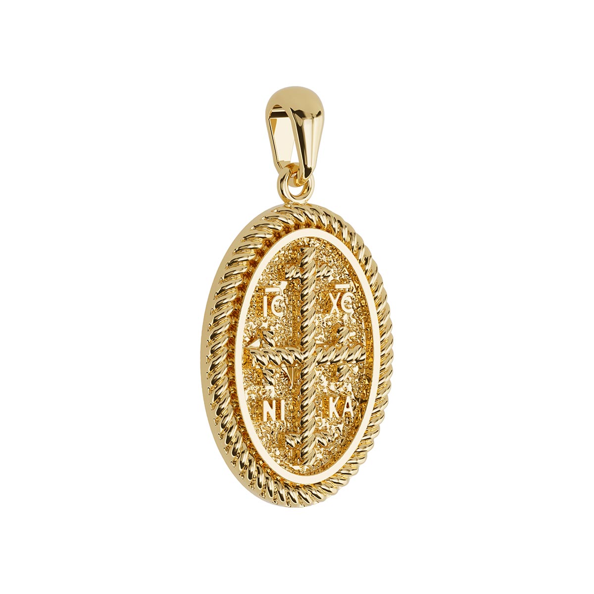 Oval Byzantine Style Konstantinato Pendant with Rope Edges