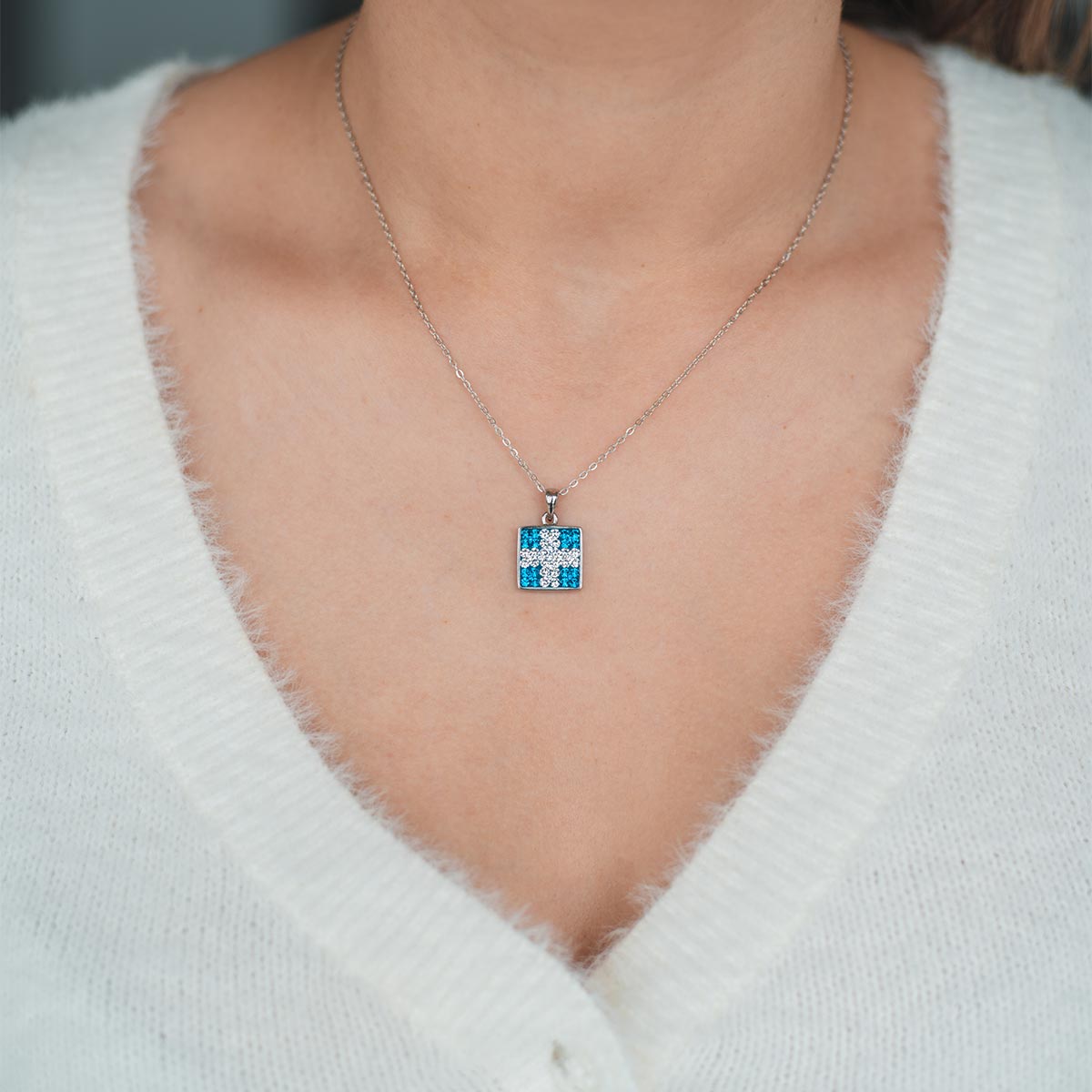 Greek Flag Crystal Necklace