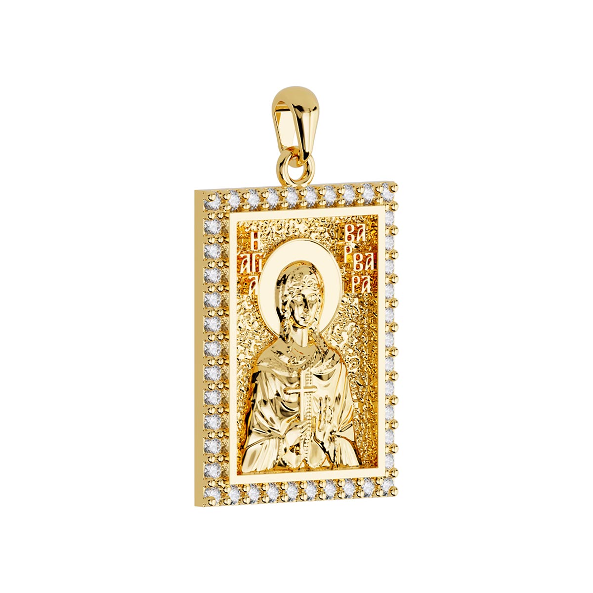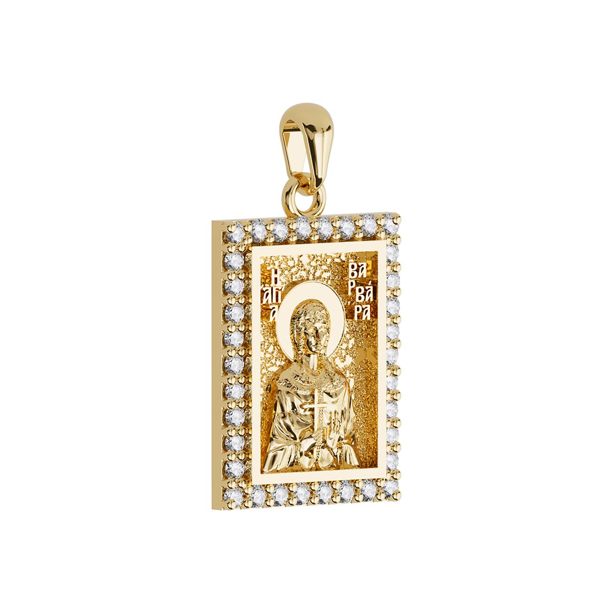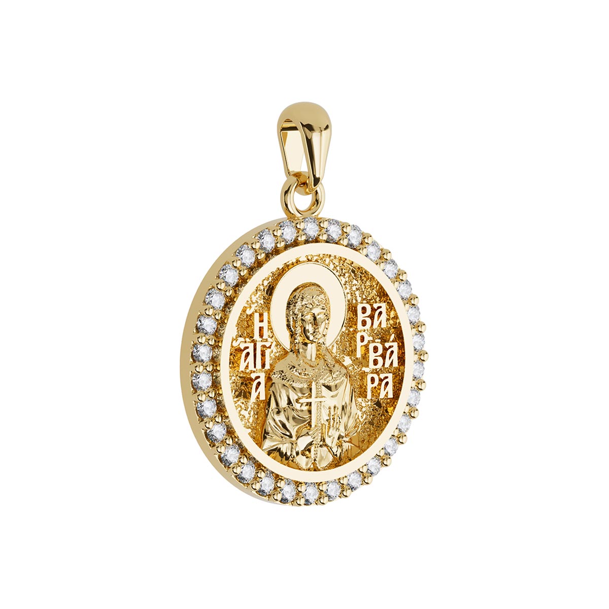 Saint Barbara Orthodox Icon Sculpted Medium Pavé Round Medal