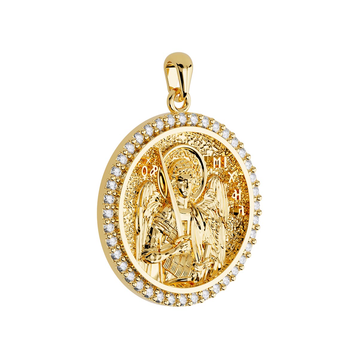 Saint Michael the Archangel Orthodox Icon Sculpted Medium Pavé Round Medal