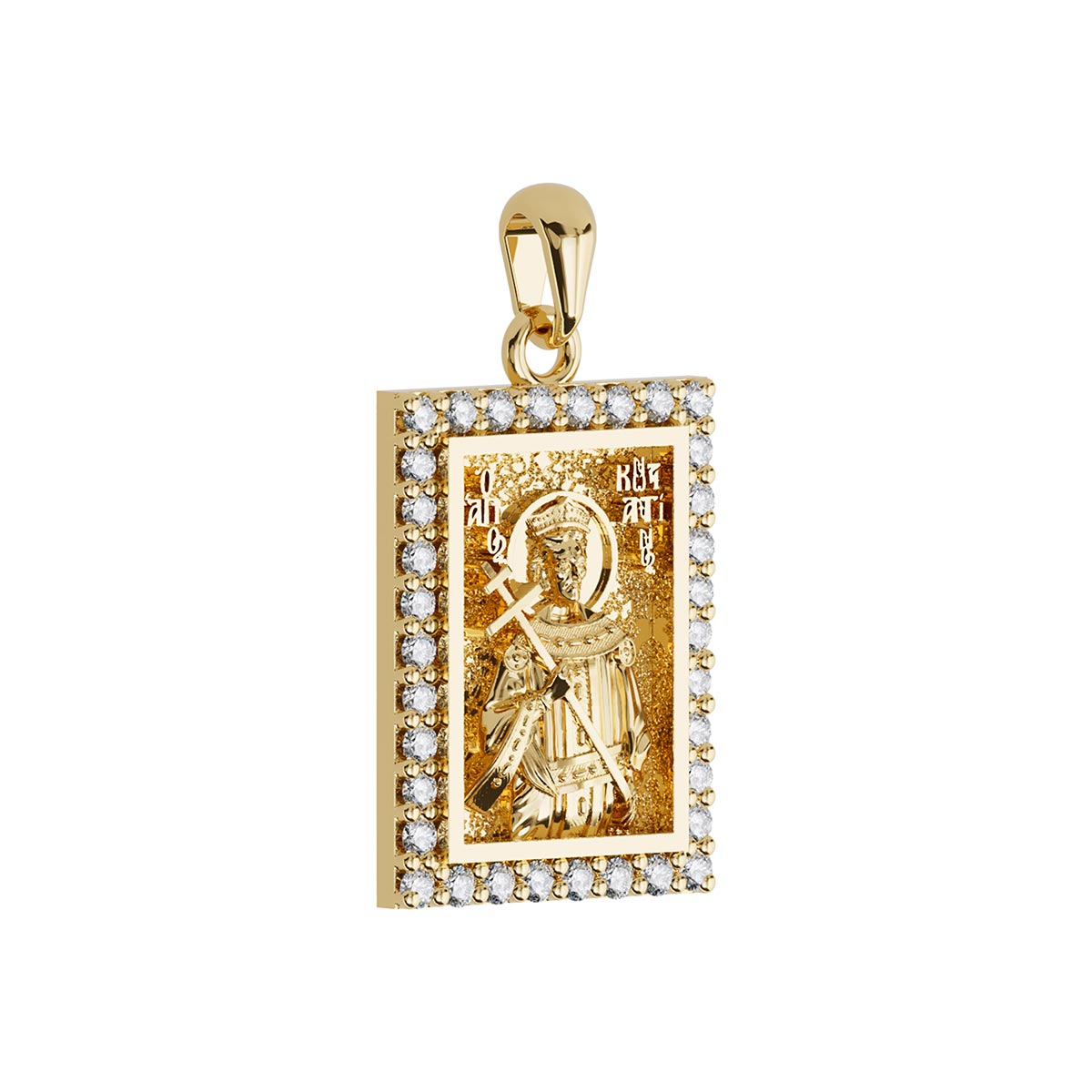 Saint Catherine (Katherine) Orthodox Icon Sculpted Medium Pavé Tag Medal