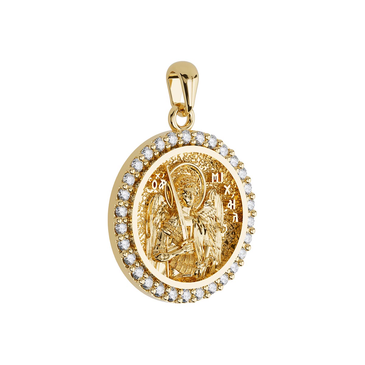 Saint Michael the Archangel Sculpted Small Pavé Round Medal