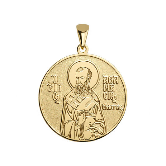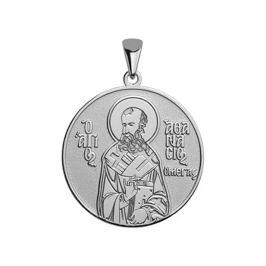 Saint Athanasius the Great Orthodox Icon Sculpted Medium Pavé Round Medal