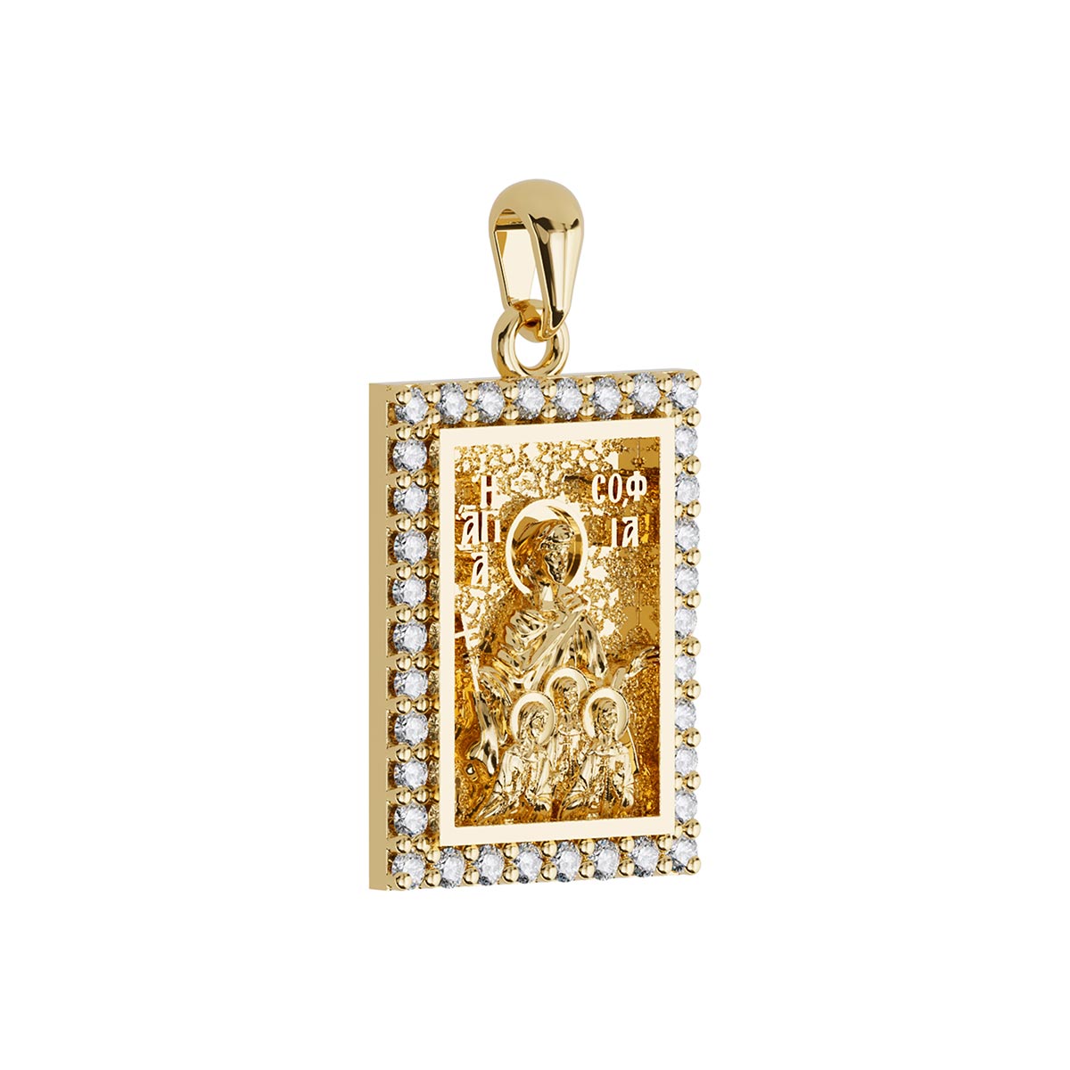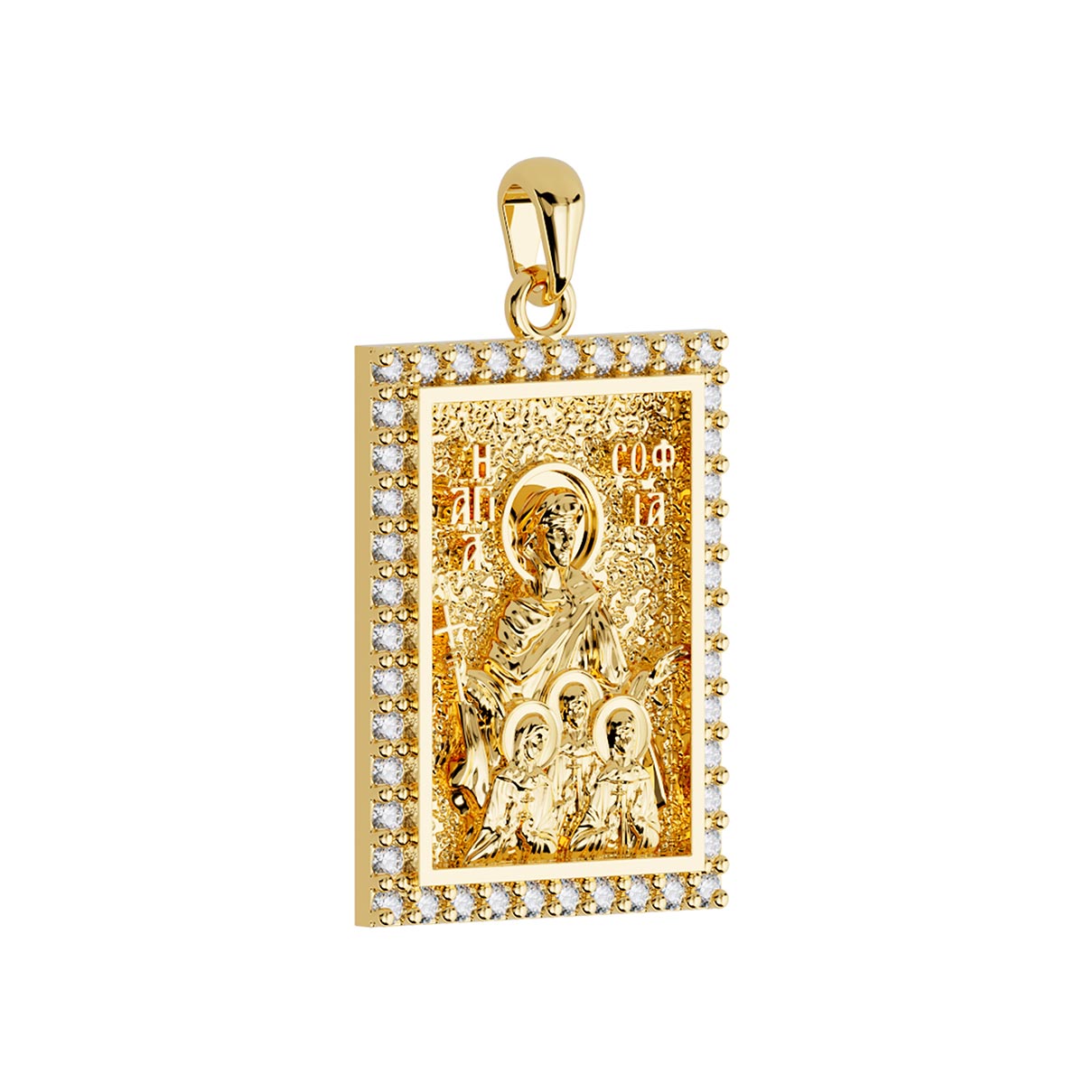 Saint Sophia (Sofia) Orthodox Icon Sculpted Medium Pavé Tag Medal