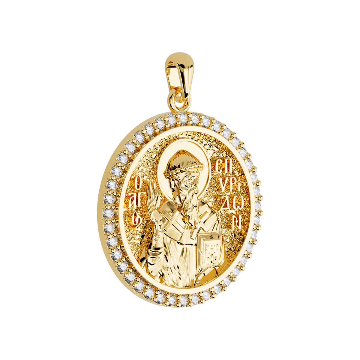 Saint Spyridon Orthodox Icon Sculpted Medium Pavé Round Medal