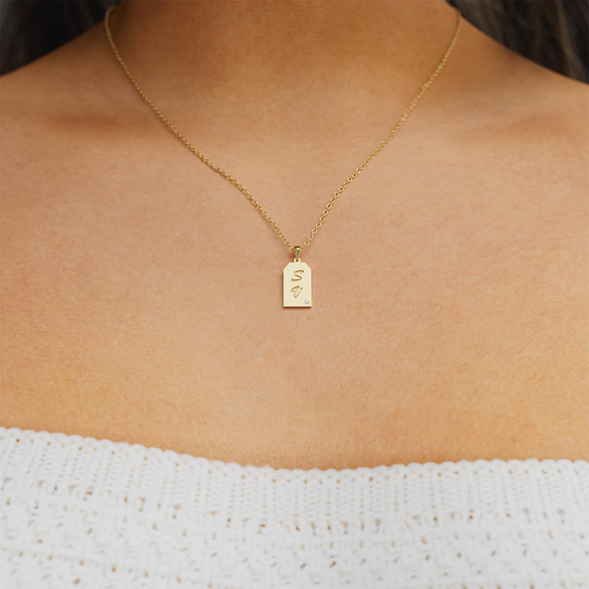 Double Initial Tag Necklace with Stone