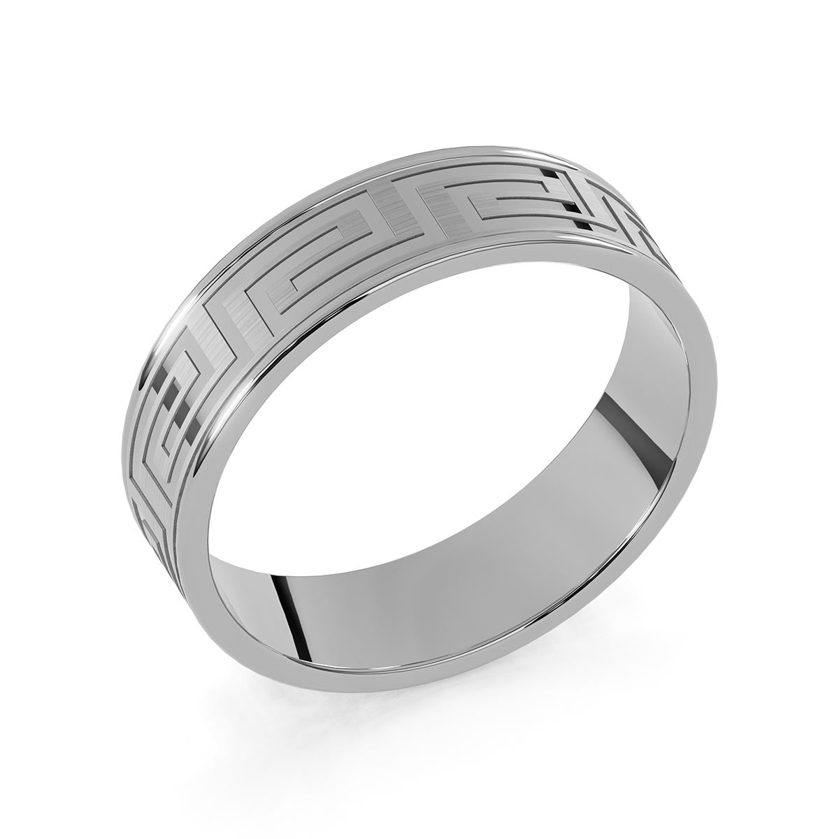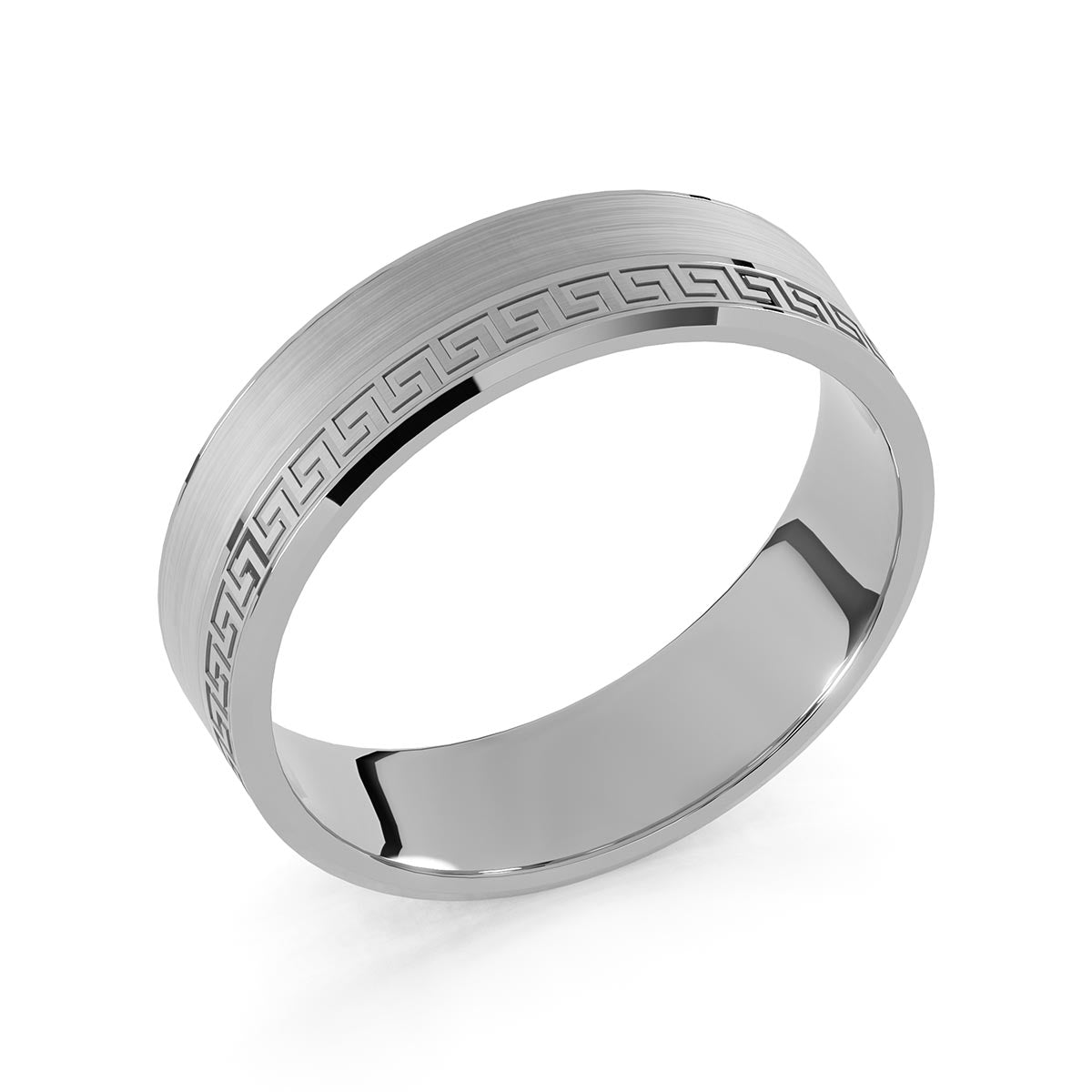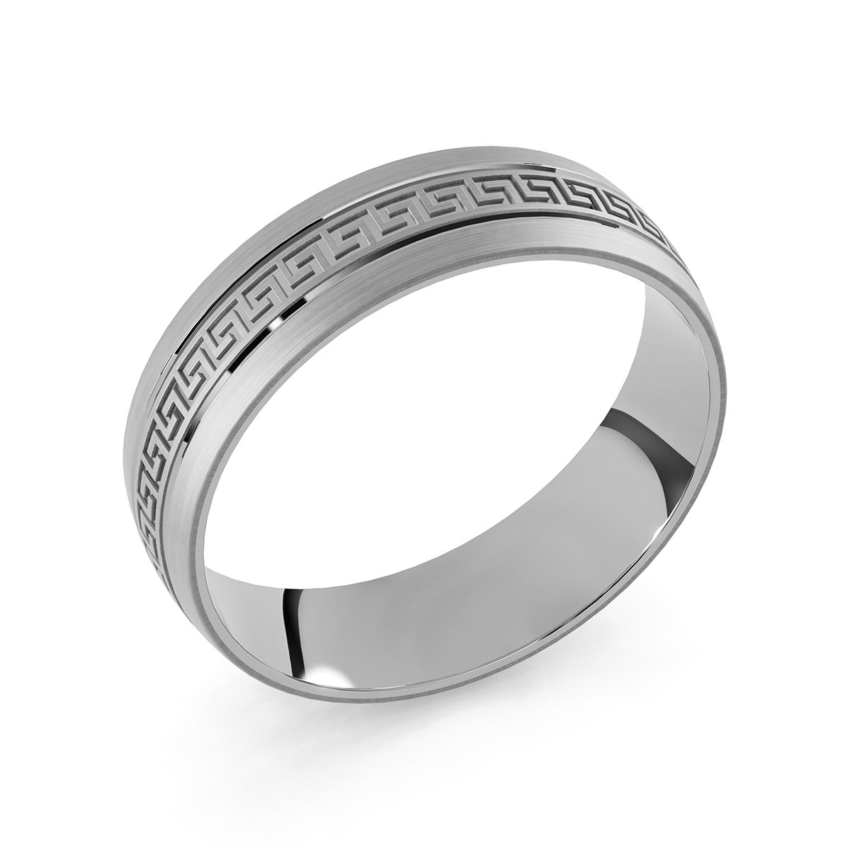 Comfort Fit 6MM Greek Key Inlay Wedding Ring with Satin Edges