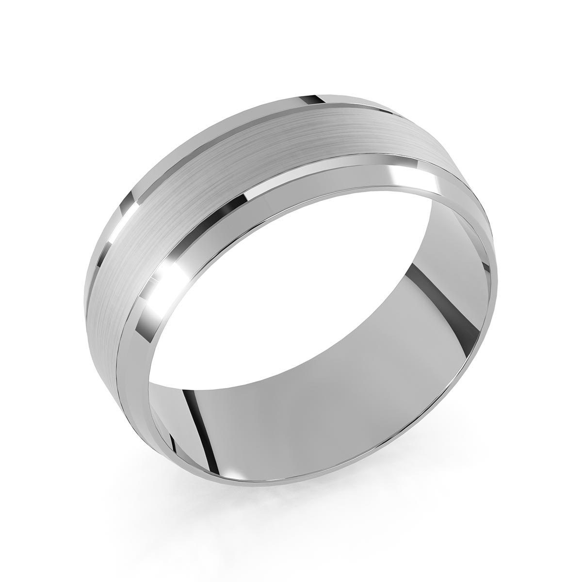 Comfort Fit 8MM Beveled Men's Wedding Ring with Satin Inlay