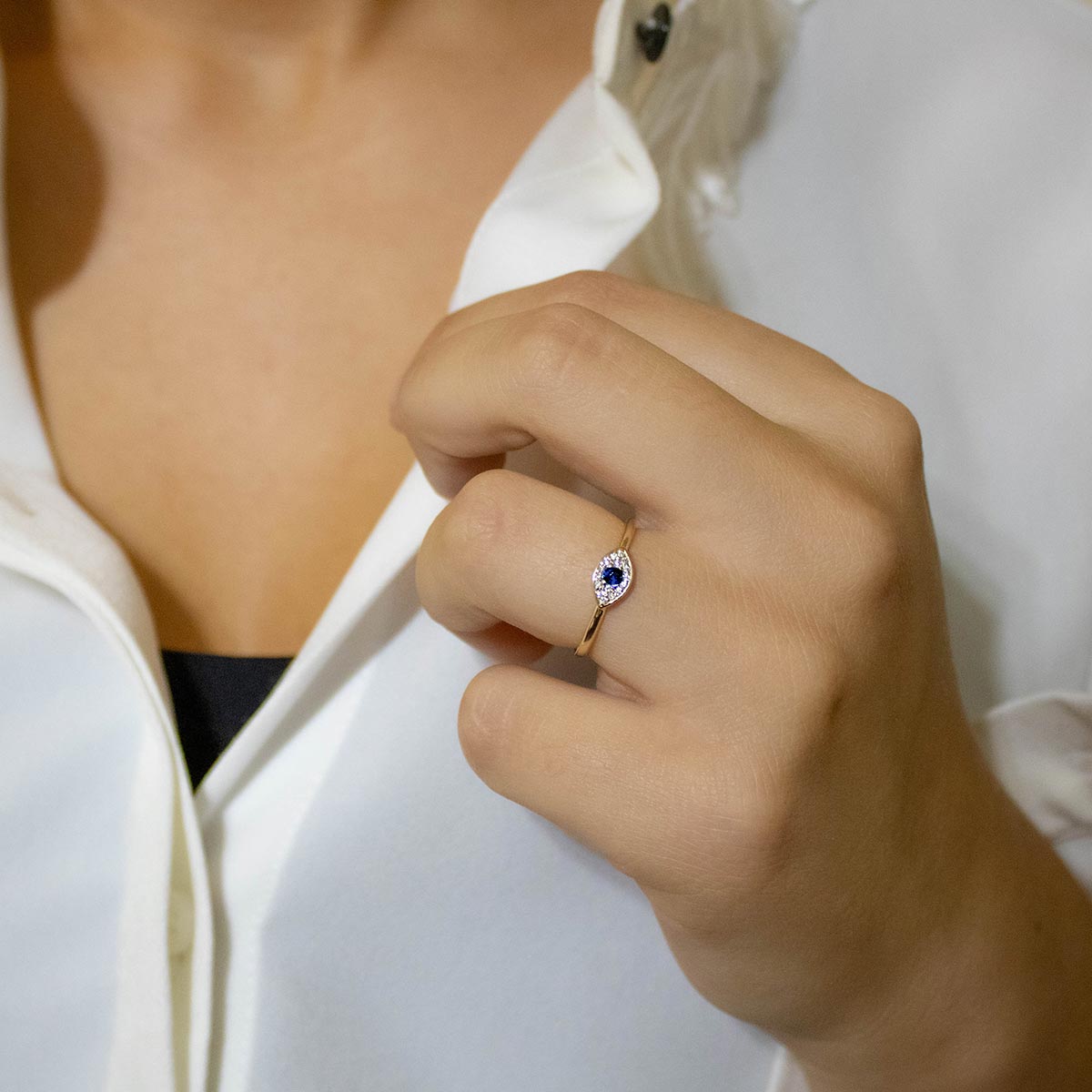 Evil Eye Pavé Sapphire Ring