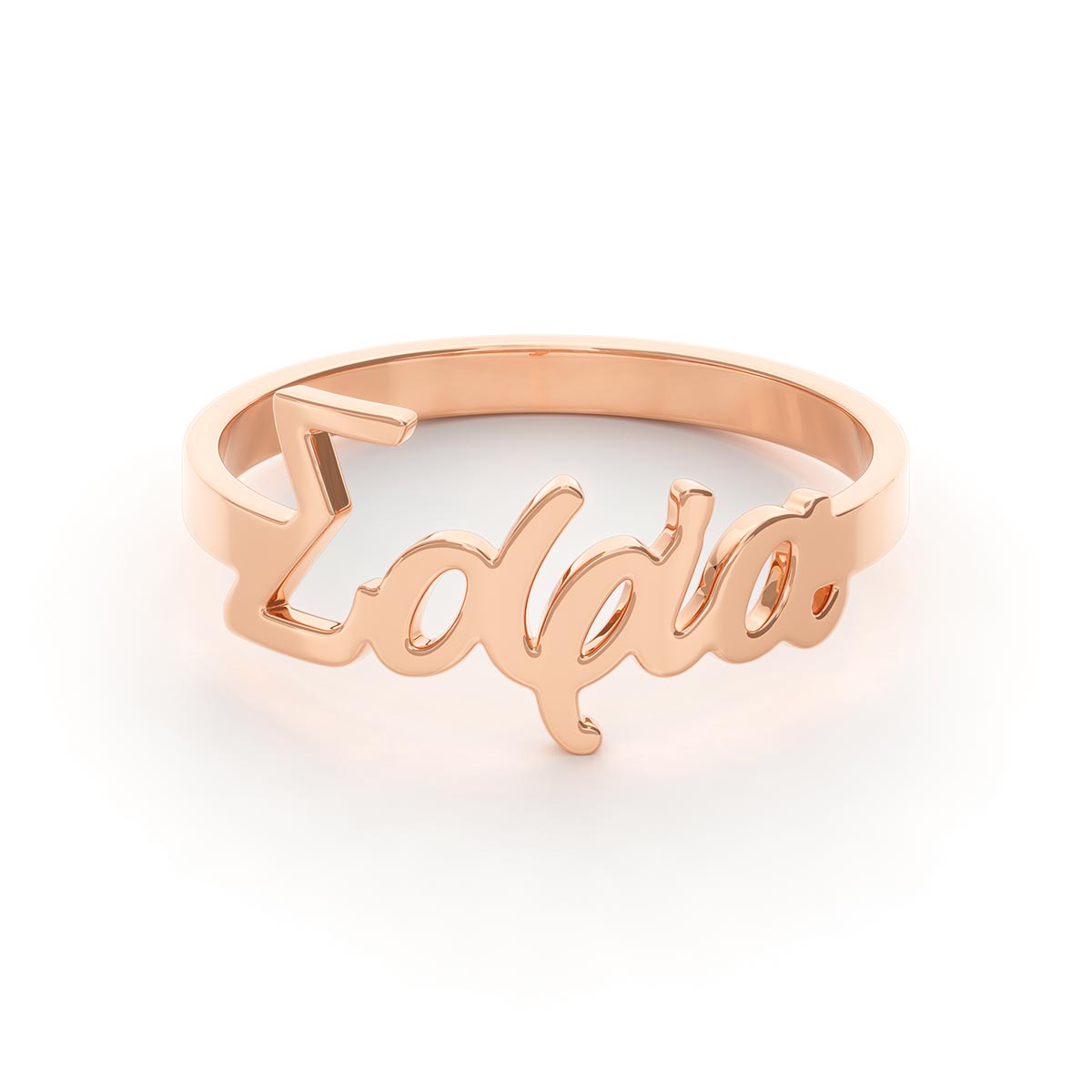 Every proud Greek needs a Greek name ring in her jewelry box. Customize it with your name, or choose your favorite Greek word to create a ring that is uniquely yours. Guaranteed to garner compliments, you'll want to wear this Greek name ring every day.