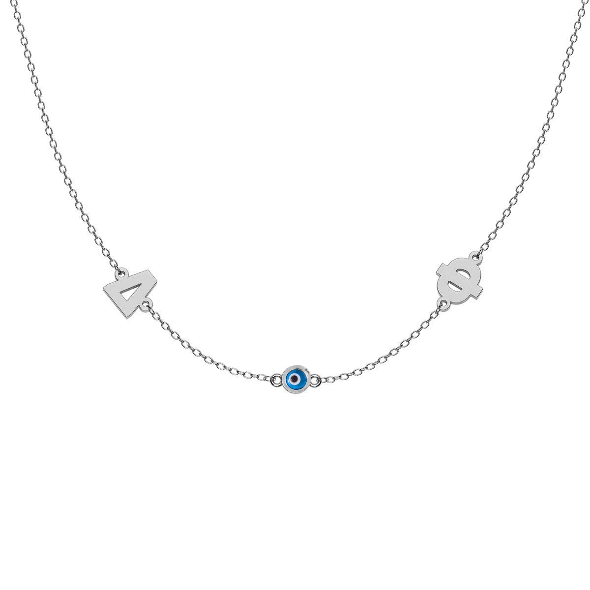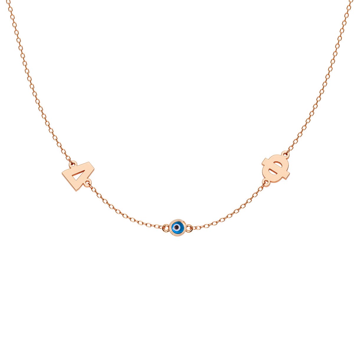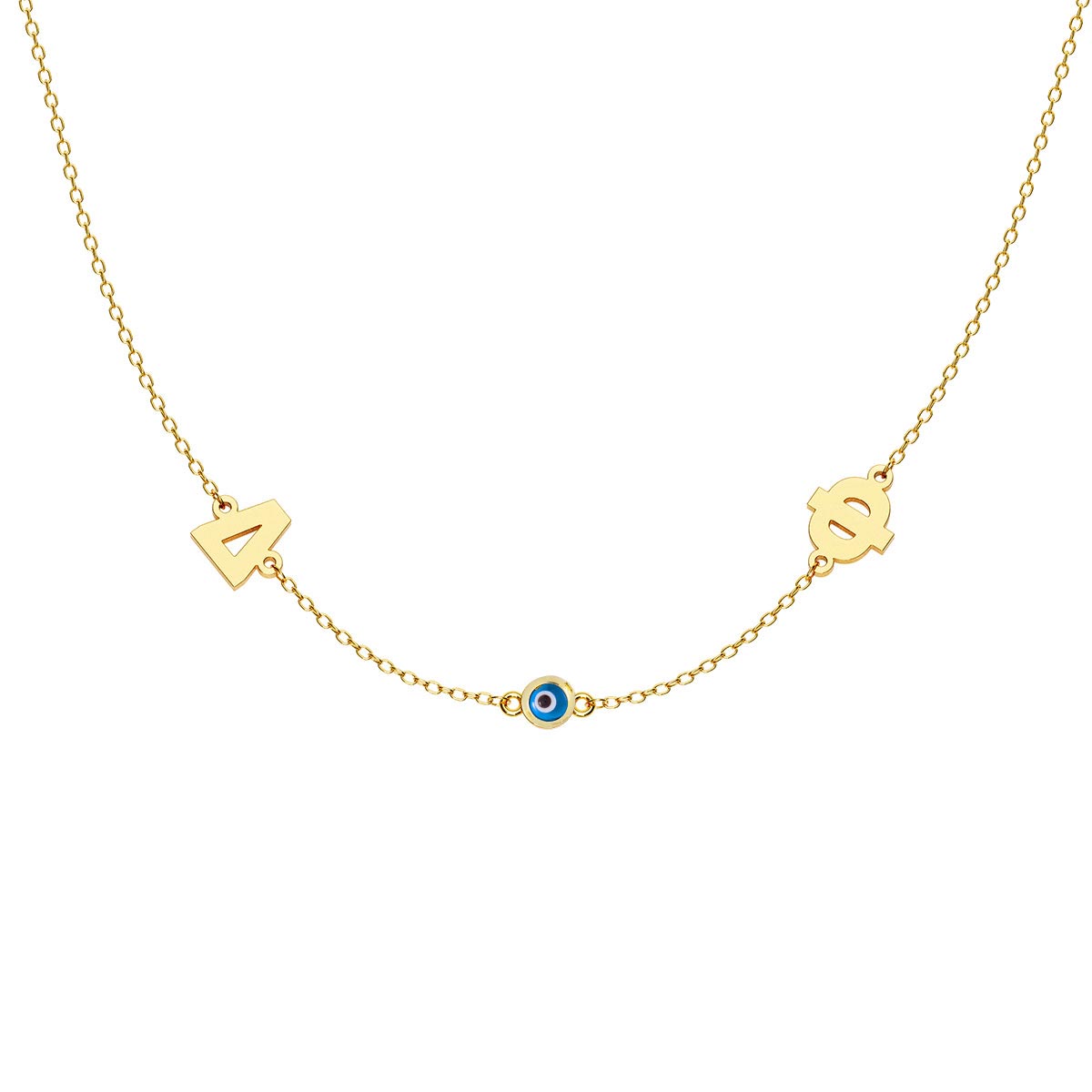 Greek Personalized 2 Initial Necklace With Round Evil Eye Charm