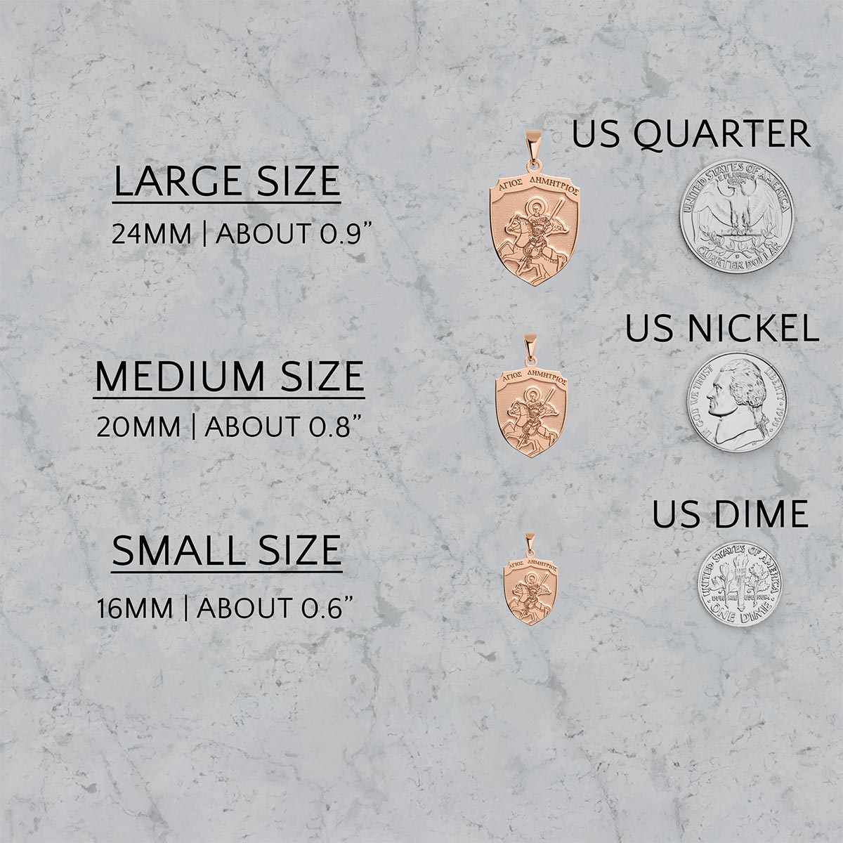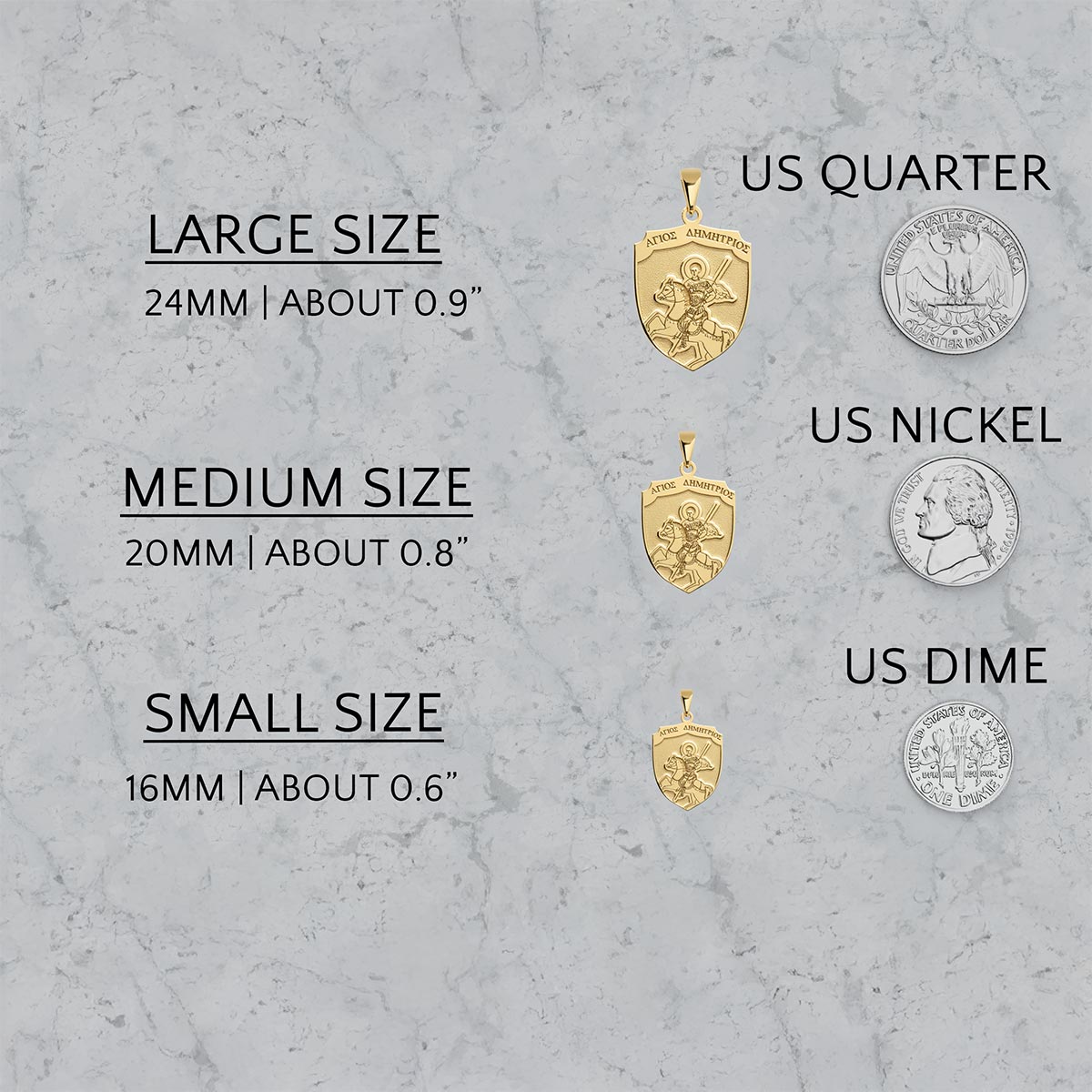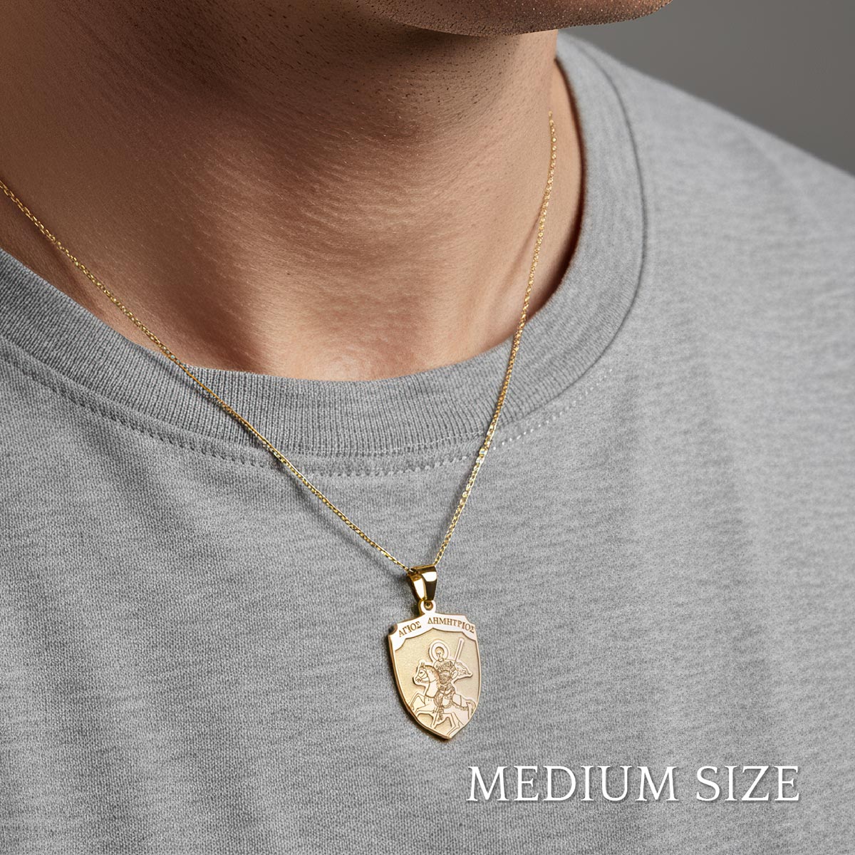 Experience divine protection with our exquisite Saint Demetrius (Demetrios) on Horse Greek Orthodox Icon Shield Medal. This beautifully crafted piece features a stunning depiction of Saint Demetrius, the valiant warrior saint, mounted on horseback. Adorned with intricate detail and imbued with spiritual significance, this medal serves as a powerful amulet. It's perfect for those seeking comfort, courage, and a tangible connection to their faith. Own a piece of sacred art that blends timeless tradition with elegant design.