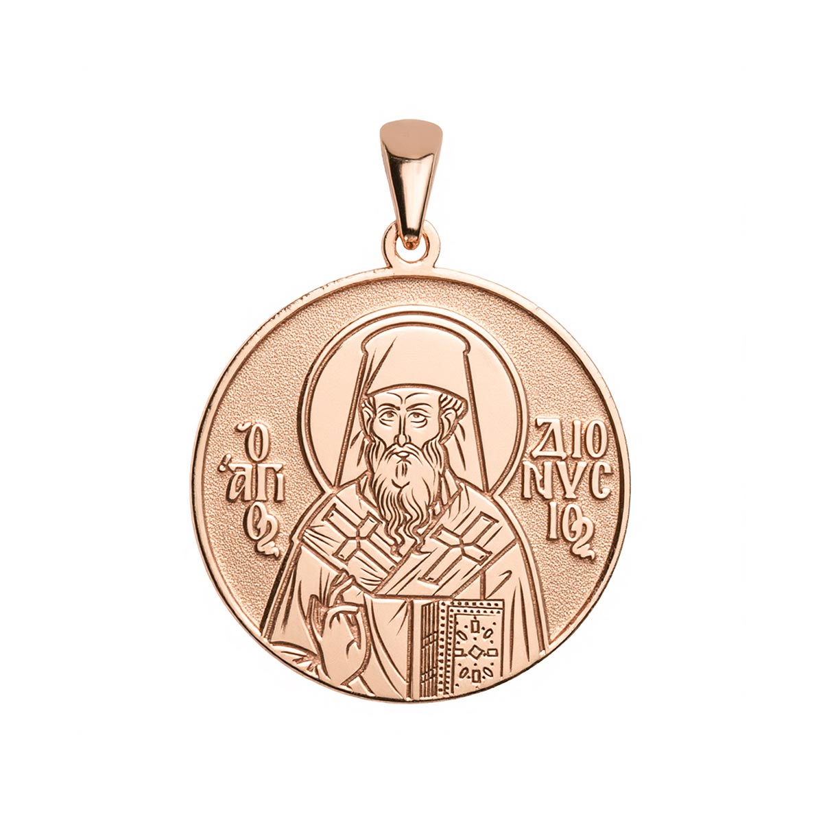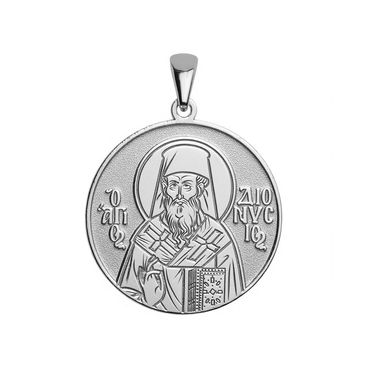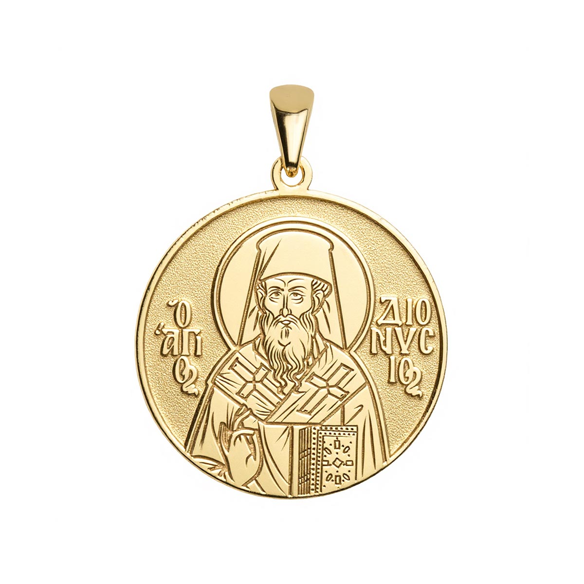 This highly detailed, historically accurate representation of the Greek Orthodox icon of Saint Dionysius is engraved into a round medal in the metal of your choice. Available with or without a chain, this piece makes for the perfect gift for yourself, or for a special someone’s name day! Saint Dionysius the Areopagite was a biblical figure mentioned in the Acts of the Apostles. He was a member of the Athenian court of justice who converted to Christianity after hearing the teachings of the Apostle Paul.