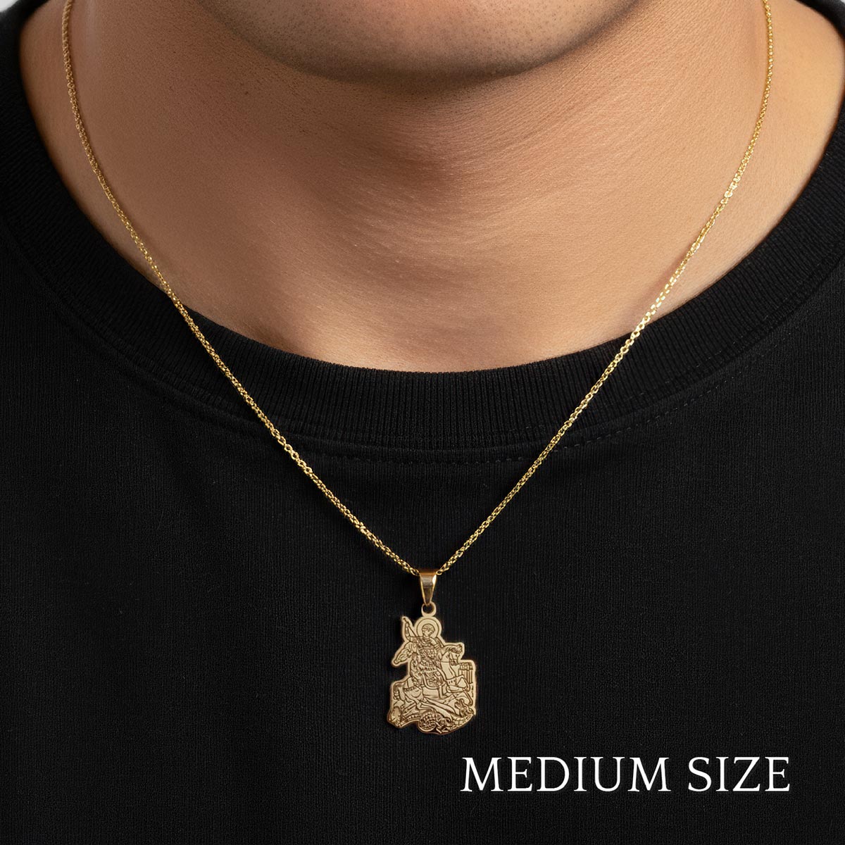 Embrace divine protection with this exquisite Saint George and the Dragon Greek Orthodox Icon Pendant. Crafted with reverence, this pendant features a detailed depiction of Saint George, the valiant dragon-slayer, a powerful symbol of courage and faith. Made with the finest materials, its intricate design and luxurious finish make it a truly special heirloom. Wear this sacred pendant as a constant reminder of strength and divine guidance, a beautiful testament to Orthodox tradition.