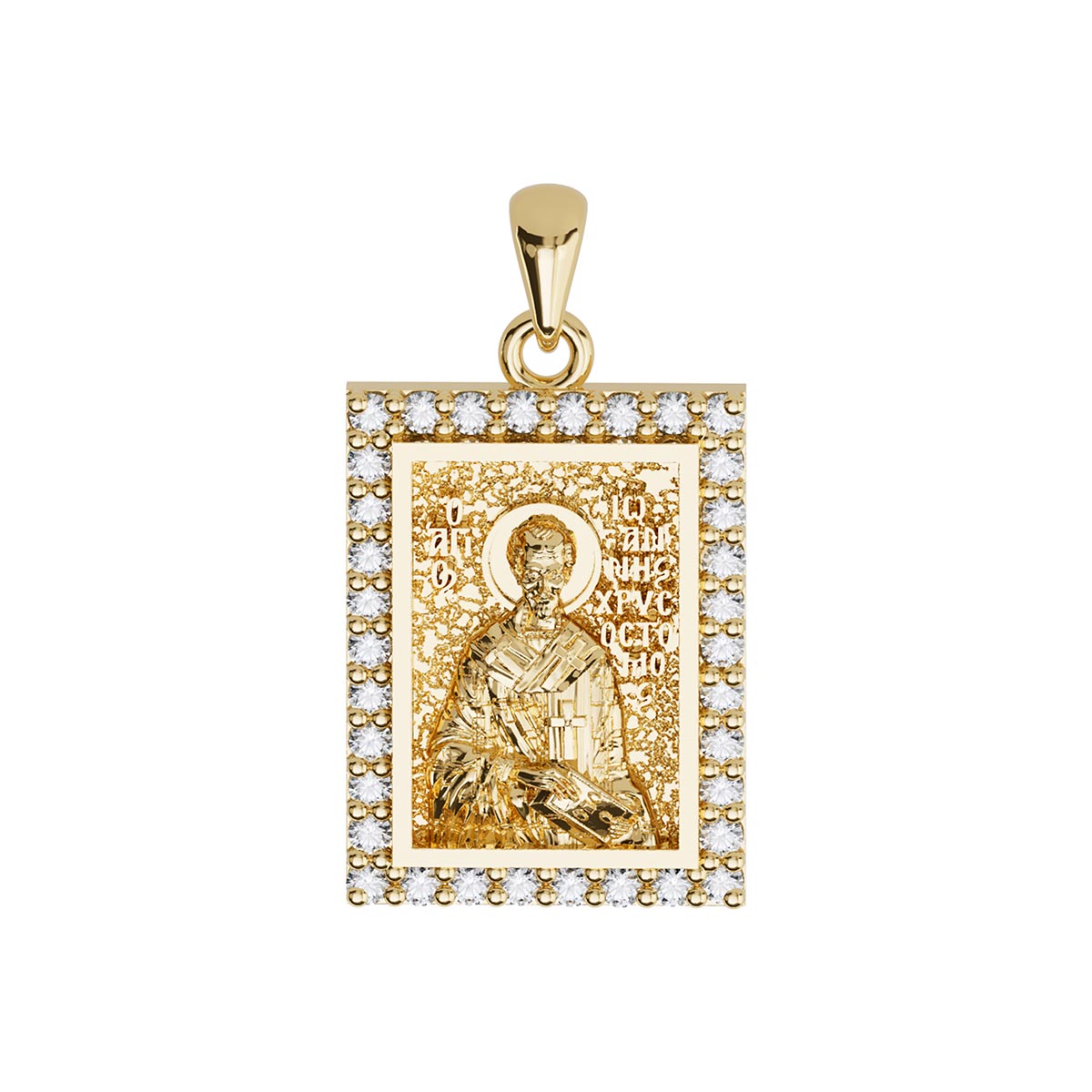 Saint John (Ioannis) Chrysostom Orthodox Icon Sculpted Small Pavé Tag Medal