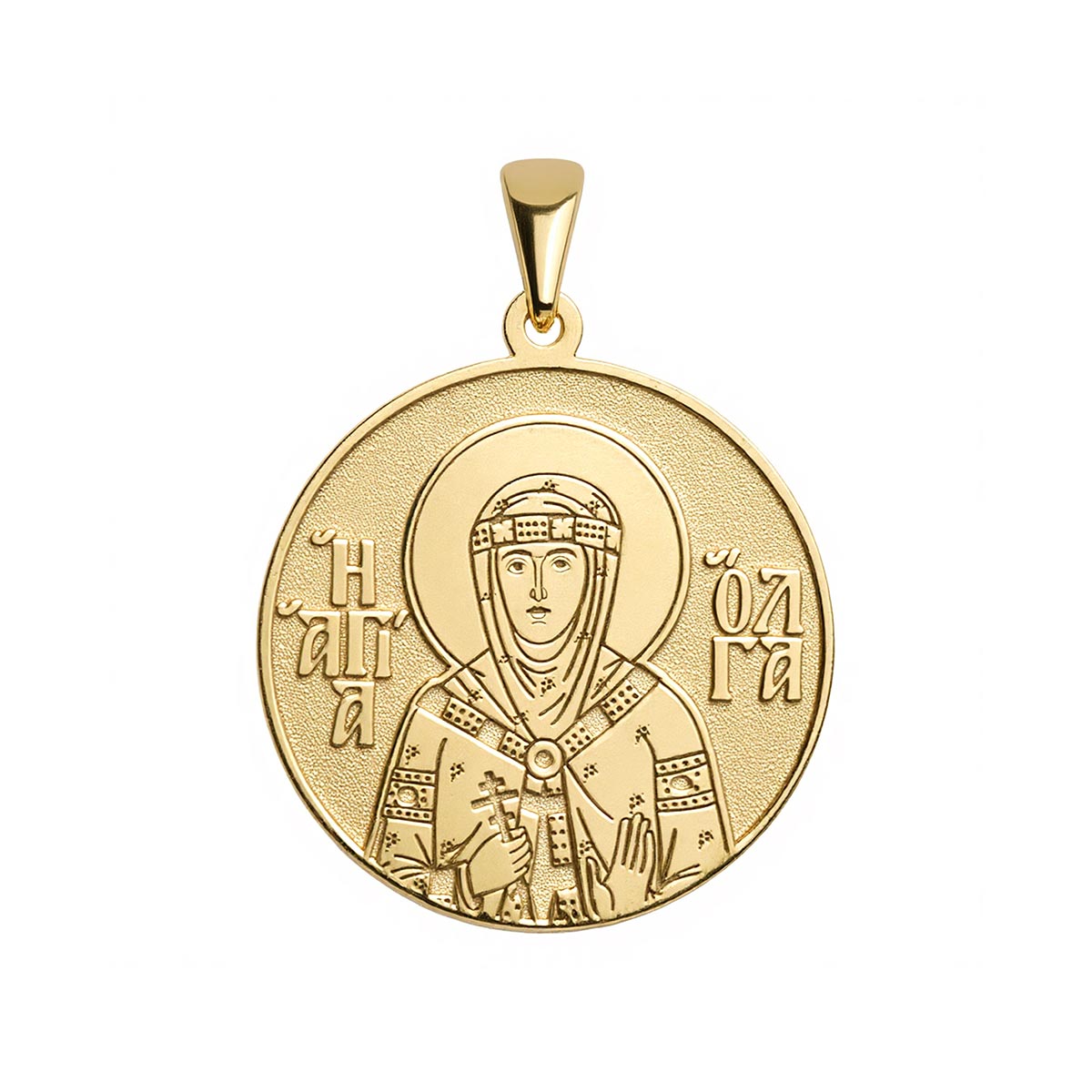 This highly detailed, historically accurate representation of the Greek Orthodox icon of Saint Olga of Kiev is engraved into a round medal in the metal of your choice. Available with or without a chain, this piece makes for the perfect gift for yourself, or for a special someone’s name day! Saint Olga of Kiev was a ruler of Kievan Rus' in the 10th century and was the first member of the ruling family to convert to Christianity. She is known for her efforts to spread Christianity throughout her kingdom and for her acts of mercy towards the poor and oppressed. Saint Olga is recognized as a patron saint of converts and her feast day is celebrated on July 11th.