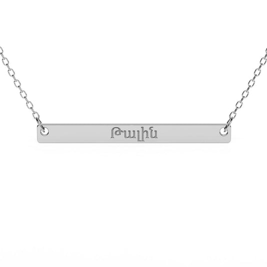 Narrow Horizontal Bar Necklace with Engraving and Turquoise Evil Eye Charm