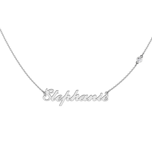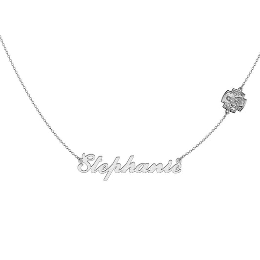 Narrow Horizontal Bar Necklace with Engraving and Cross Charm