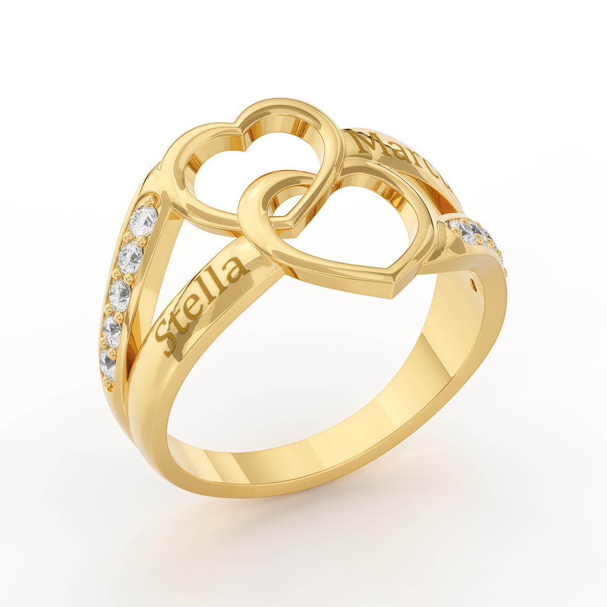 Personalized Interlocking Hearts Ring with Stones
