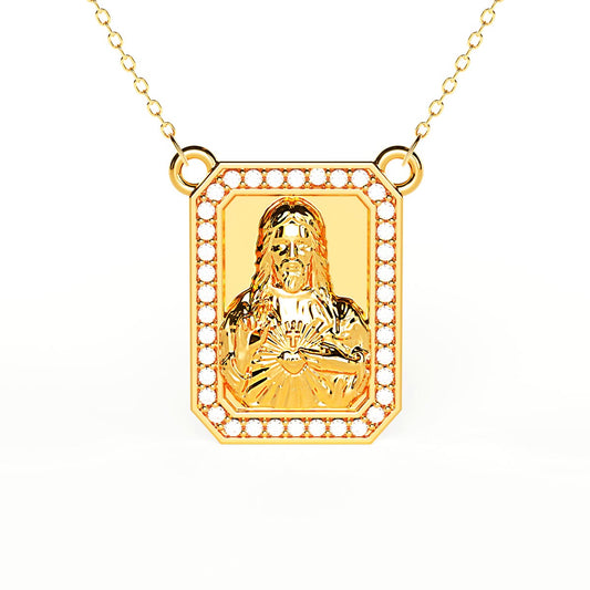 Mini Miraculous Medal Virgin Mary Pavé Necklace