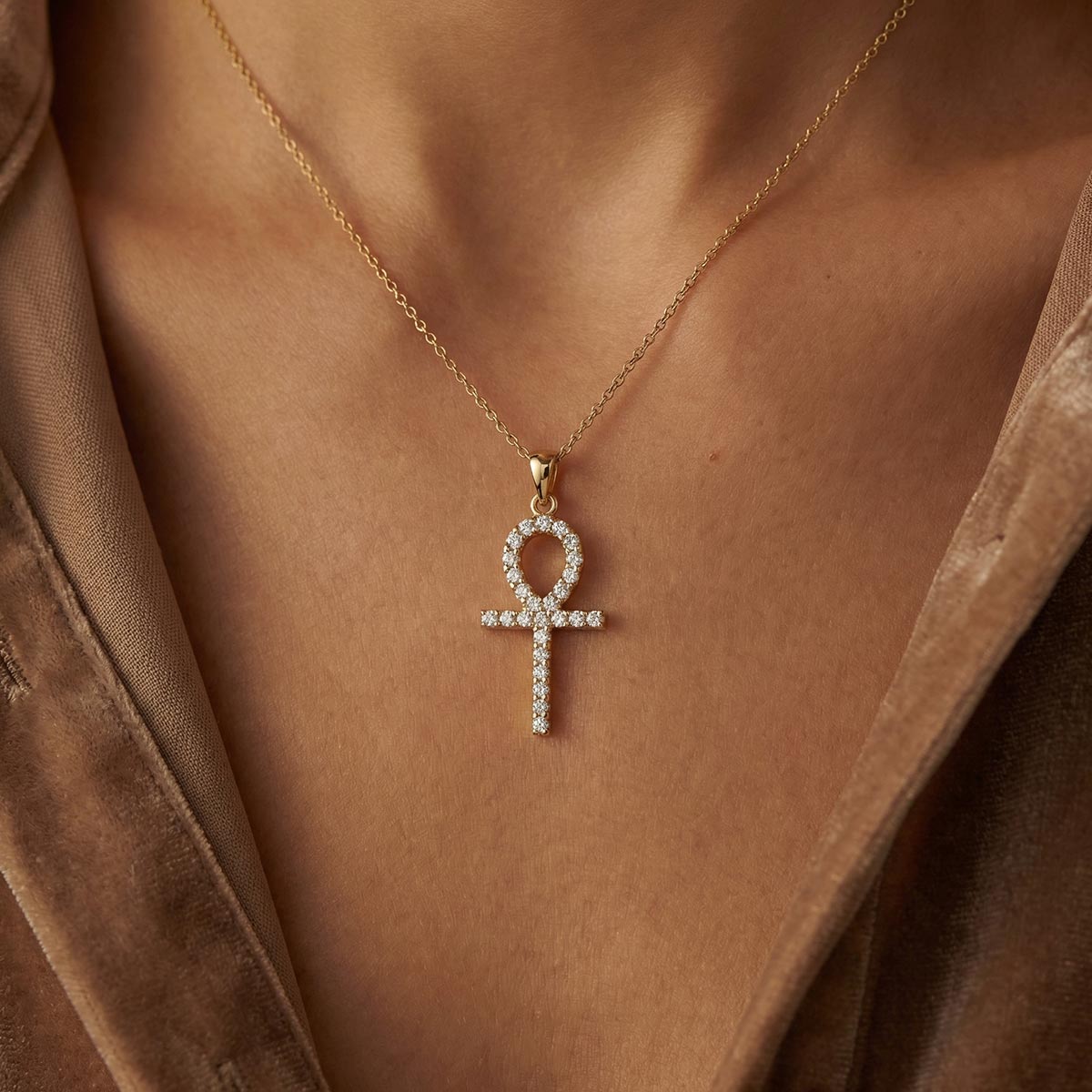 Embrace eternal elegance with our exquisite Ankh Diamond Cross pendant. This captivating piece features the ancient Egyptian symbol of life, meticulously crafted in lustrous precious metal. Each brilliant diamond is individually set, creating a mesmerizing sparkle that catches every eye. A sophisticated fusion of ancient meaning and modern luxury, this radiant diamond Ankh cross offers a timeless statement. Elevate your style and express your unique spirit with this meaningful symbol of enduring beauty and vitality.