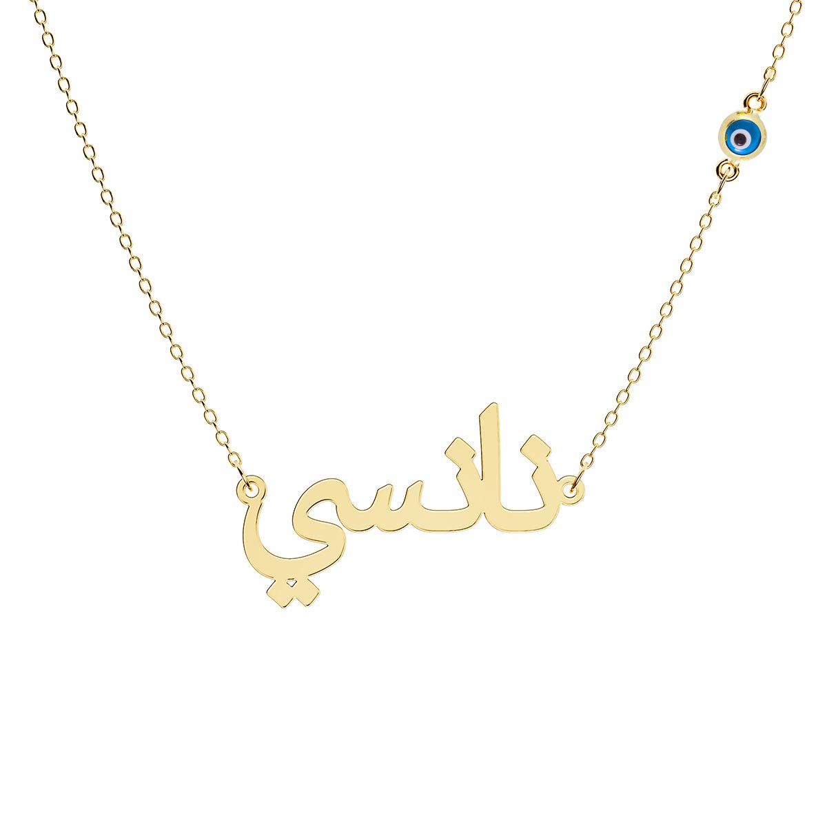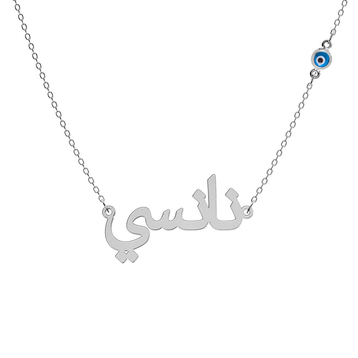 Arabic Personalized Name Necklace With Round Evil Eye Chain Charm