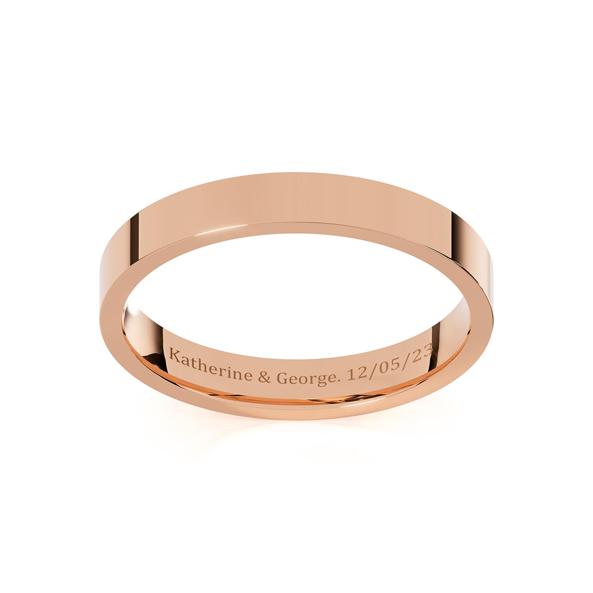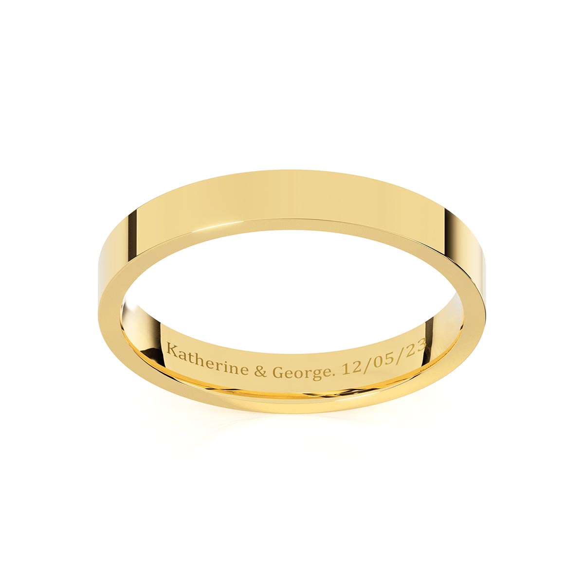 Introducing our Flat Comfort Fit 3mm Classic Wedding Band, a timeless symbol of love and commitment. Designed to seamlessly embrace your finger with its sleek flat profile, the comfort fit design offers the most comfortable wear for everyday. Made with meticulous craftsmanship, it’s available in your choice of solid gold or platinum, allowing you to create a meaningful piece that reflects your personal style. For an added touch of sentiment, engrave a personalized message inside the band!