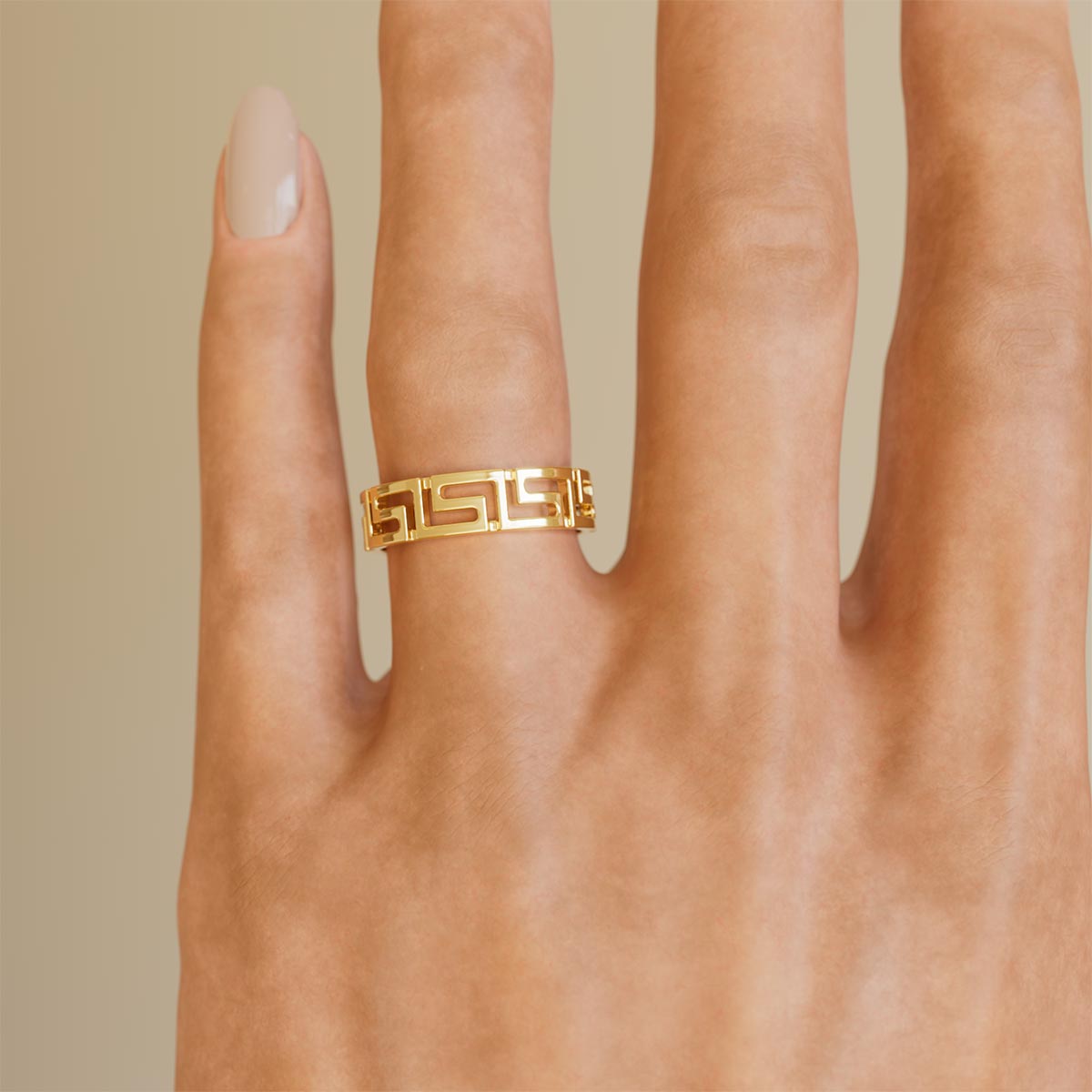 This 5mm ring showcases the timeless Greek key design, offering a slightly bolder statement for everyday wear. Crafted in your choice of solid gold or sterling silver, it’s designed to stand out while honoring a classic motif.