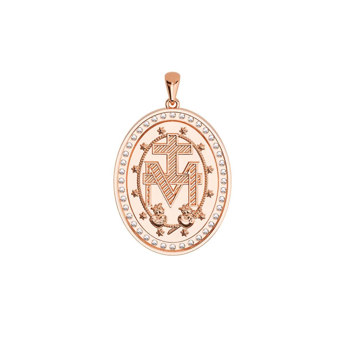 Elevate your style with our exquisite Miraculous Medal Virgin Mary Pavé Necklace. This stunning two-sided pendant features the graceful image of the Virgin Mary on one side and the powerful Miraculous Medal on the other. Surrounded with sparkling stones of your choice, this necklace radiates elegance and divine beauty. Crafted with meticulous attention to detail, it's a symbol of faith and protection. Perfect for daily wear or special occasions, this necklace is a meaningful addition to any jewelry collection.