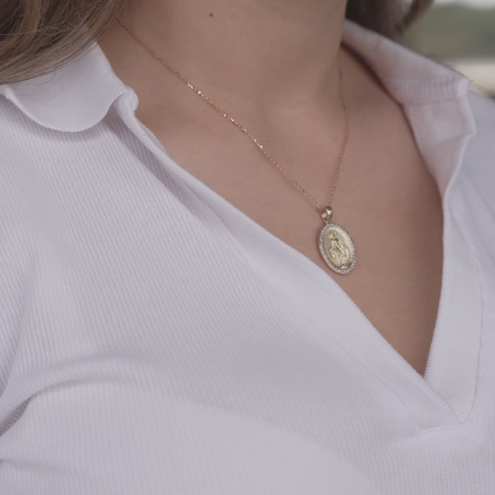 Miraculous Medal Virgin Mary Pavé Necklace