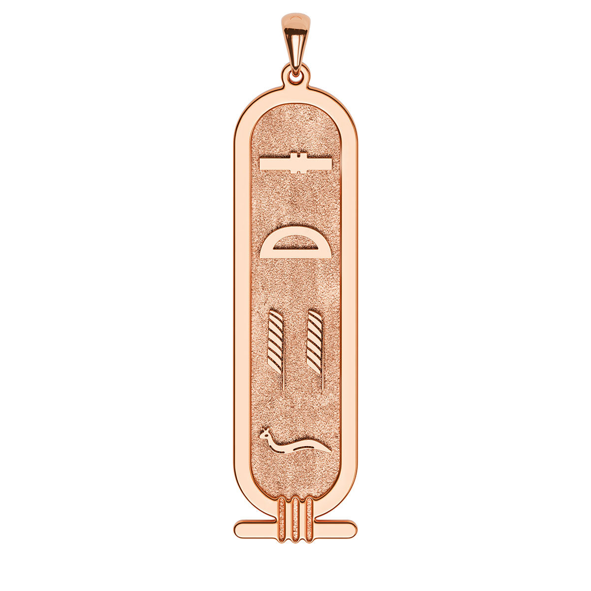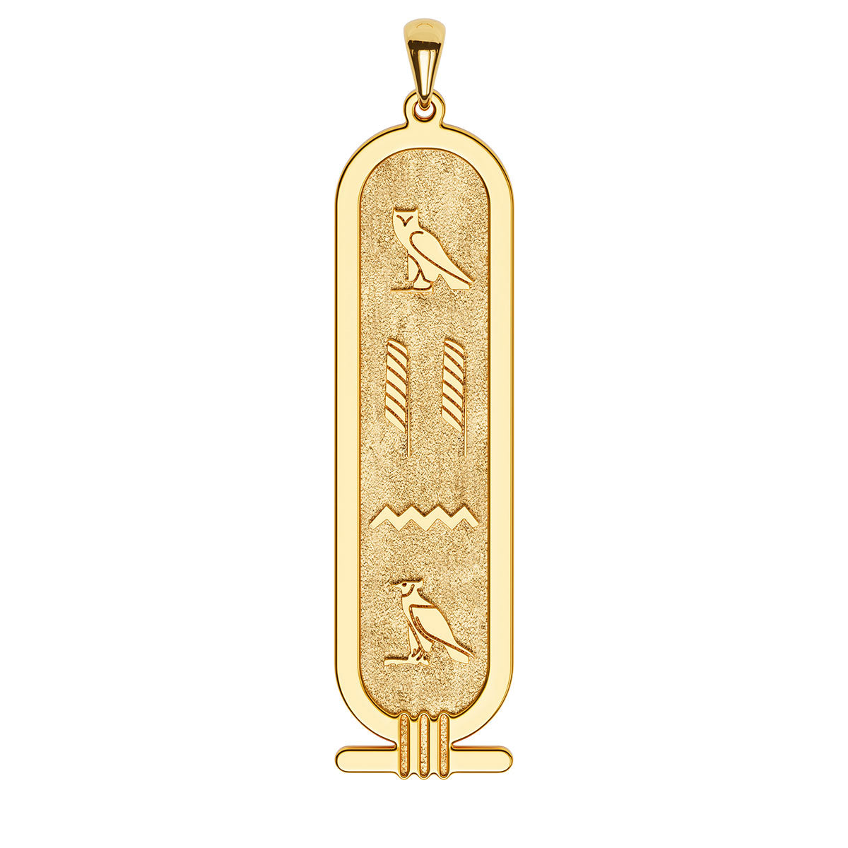 Make a statement with our Personalized Cartouche Egyptian Hieroglyph Name Necklace. This elegant and sophisticated piece of jewelry is the perfect way to show off your unique style and personality. Crafted with the highest quality materials, this necklace is available in either solid gold or sterling silver. The beautiful cartouche design features traditional Egyptian hieroglyphs that spell out your name, making it a one-of-a-kind piece that is sure to turn heads. Treat yourself or someone special to this beautiful and personalized necklace today!