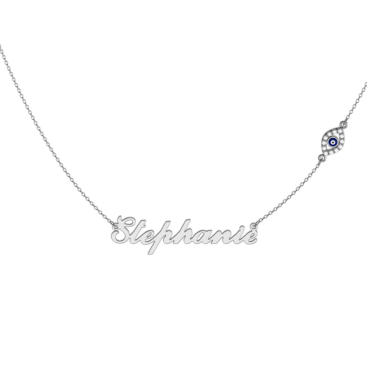 Personalized Name Necklace With Marquise Evil Eye Pavé Charm