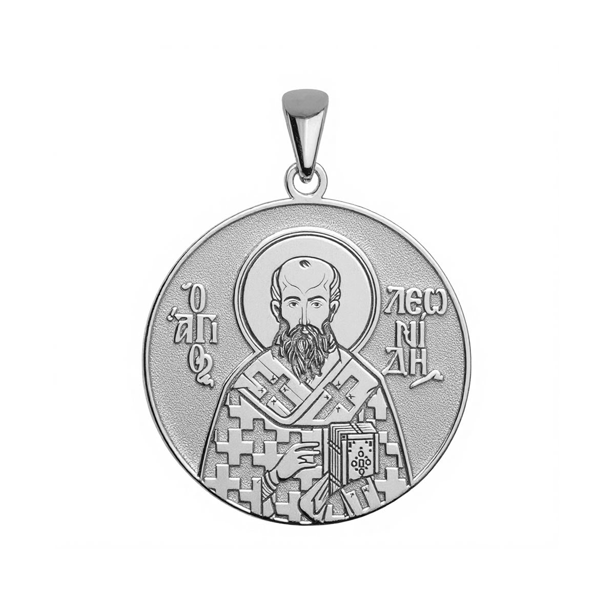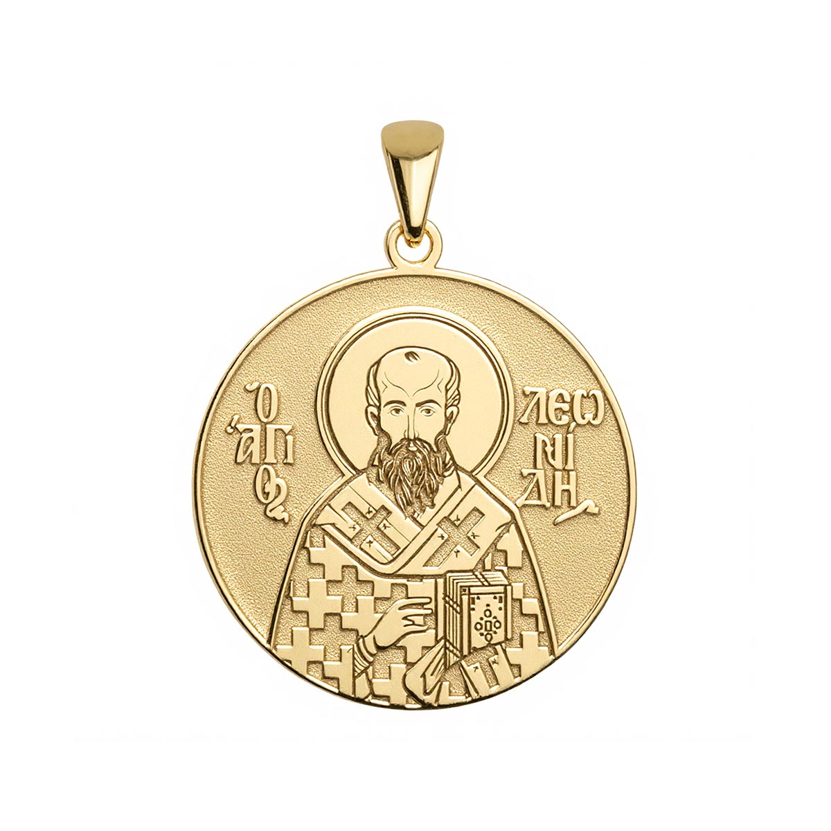This highly detailed, historically accurate representation of the Greek Orthodox icon of Saint Leonidas (Leonides) of Athens is engraved into a round medal in the metal of your choice. Available with or without a chain, this piece makes for the perfect gift for yourself, or for a special someone’s name day! Saint Leonidas (Leonides) of Athens was a martyr and the father of the famous church father Origen. He was martyred for his faith in the early 3rd century. He is commemorated on April 15.