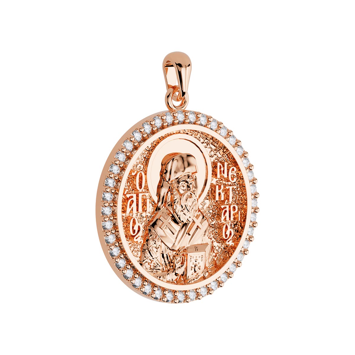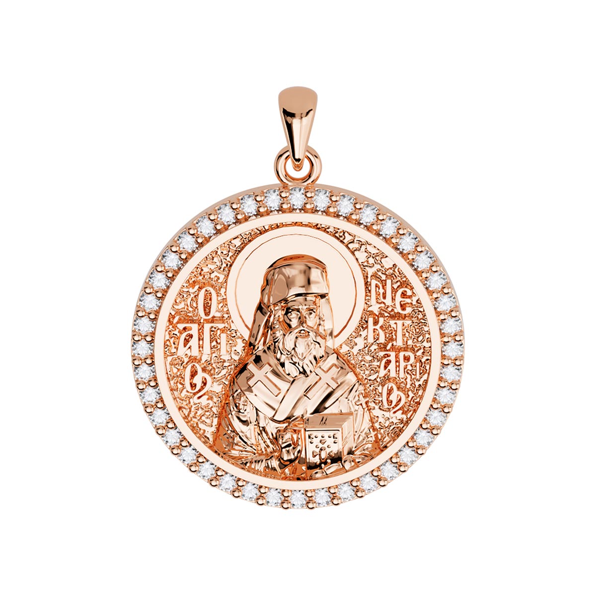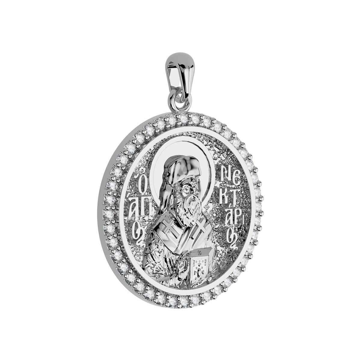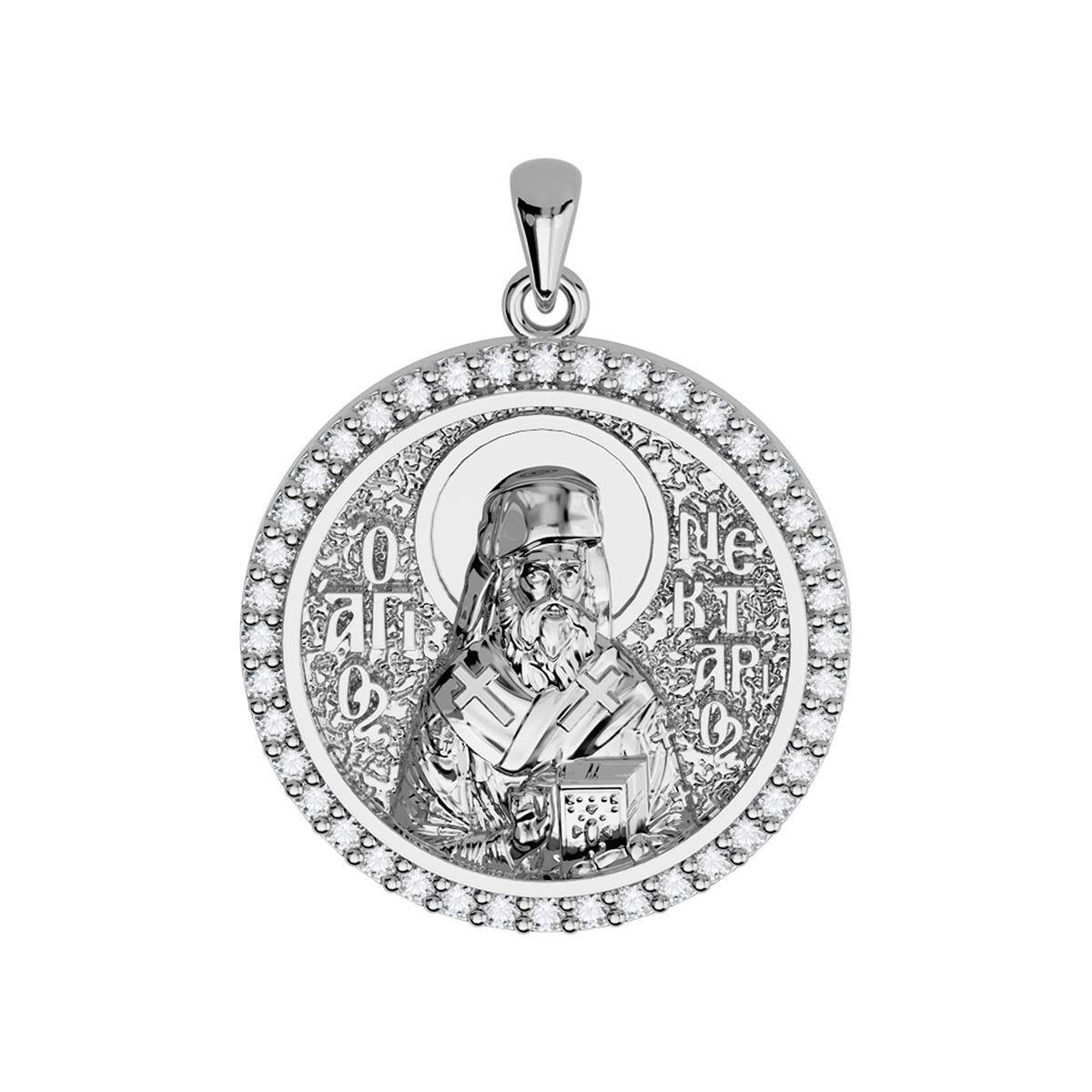 Saint Nectarios of Aegina Orthodox Icon Sculpted Medium Pavé Round Medal