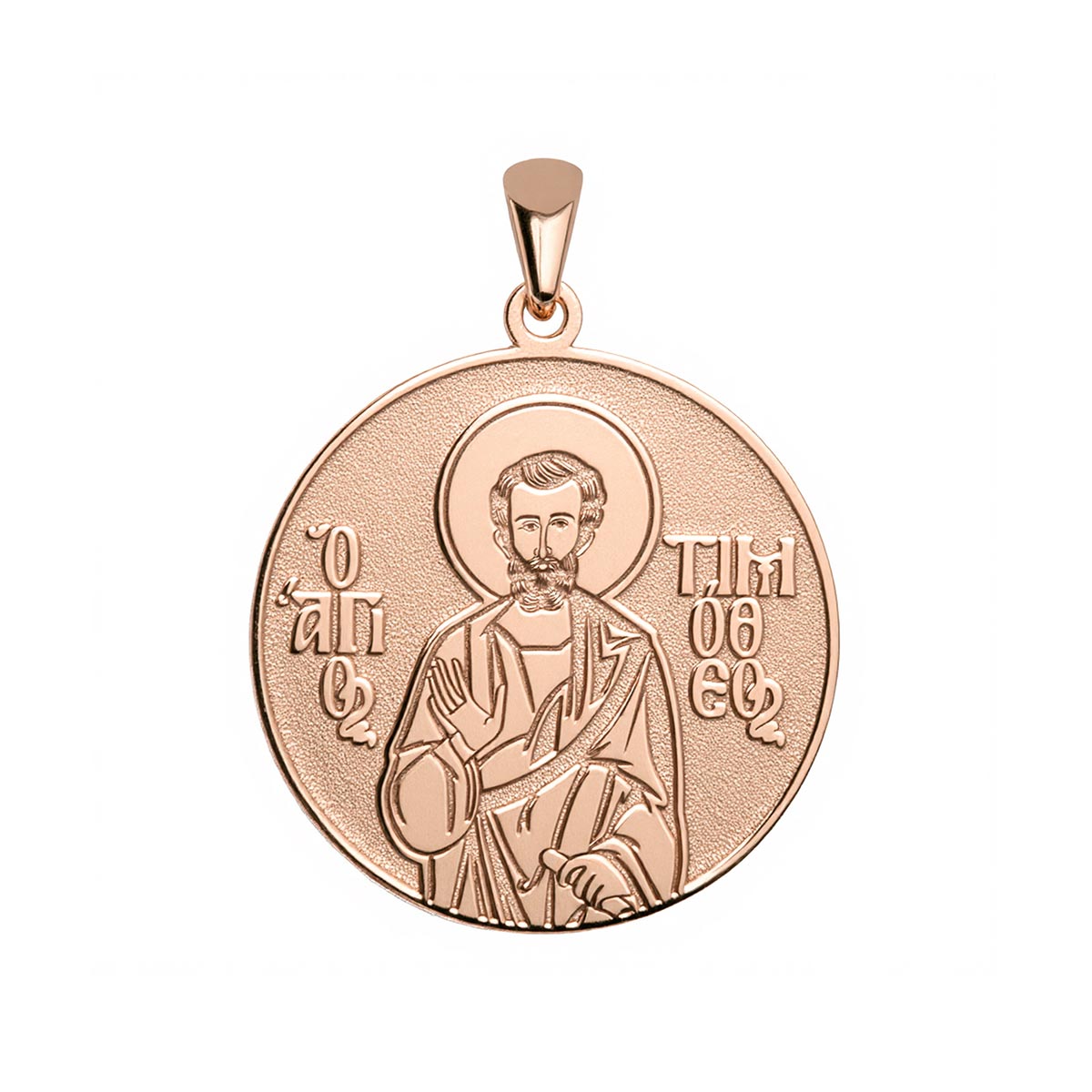 This highly detailed, historically accurate representation of the Greek Orthodox icon of Saint Timothy the Apostle is engraved into a round medal in the metal of your choice. Available with or without a chain, this piece makes for the perfect gift for yourself, or for a special someone’s name day! Saint Timothy the Apostle was a companion of the Apostle Paul and one of the first bishops of the early Christian church. He is known for his pastoral letters to the churches he founded.