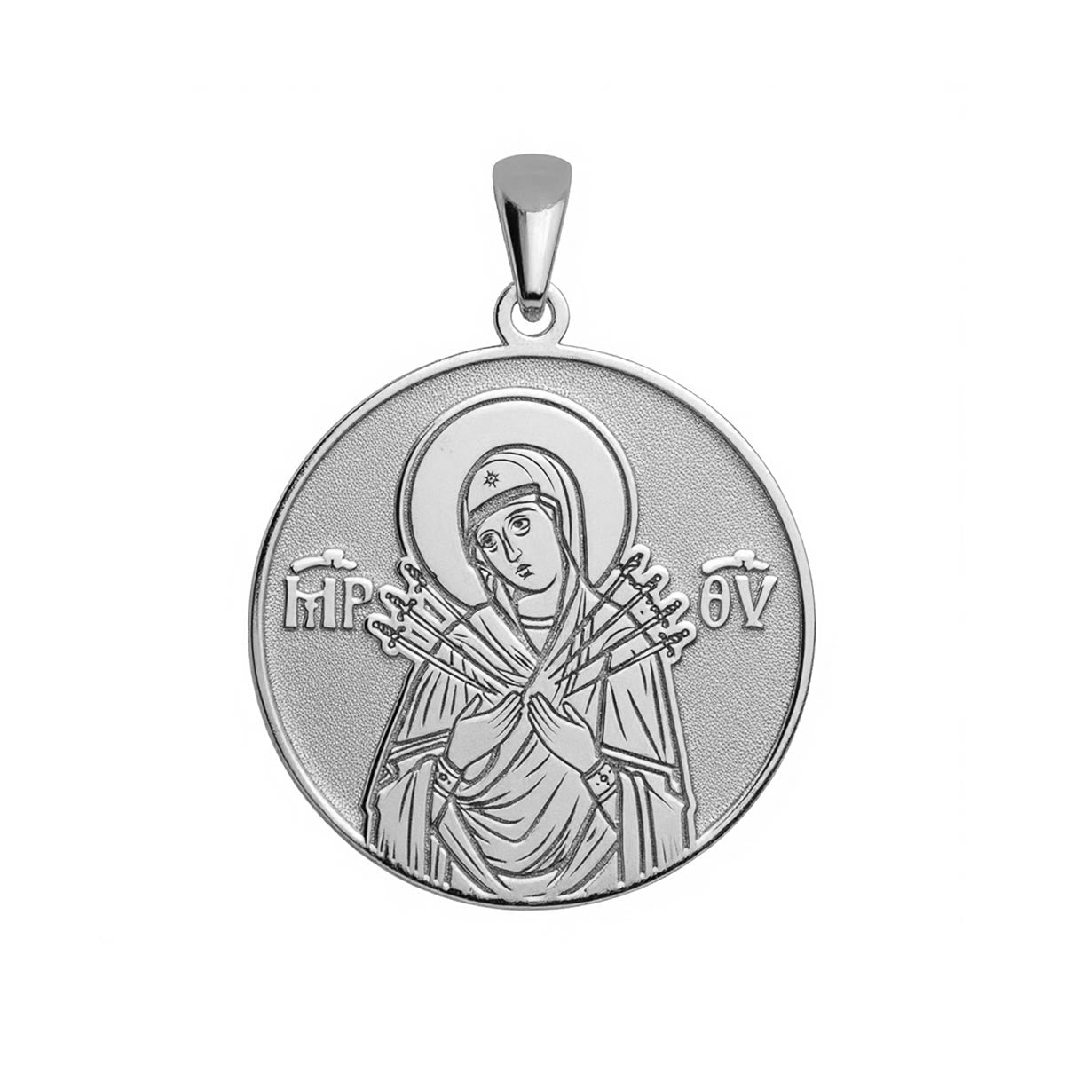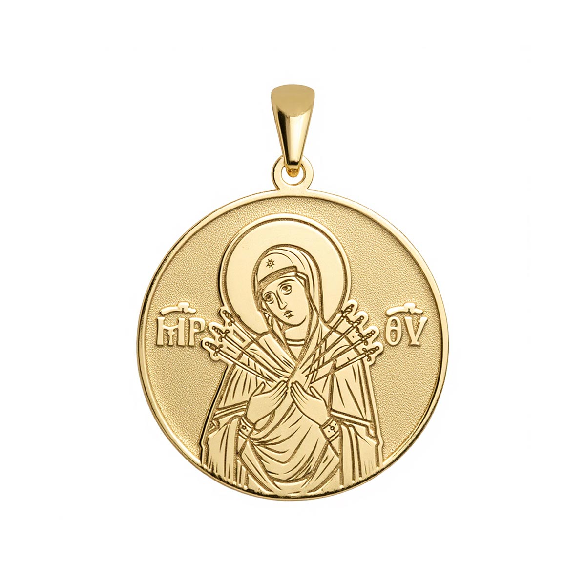 Virgin Mary of Sorrows Greek Orthodox Icon Round Medal