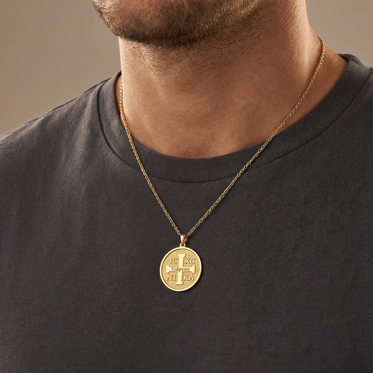 Men's Greek Cross Disc Necklace