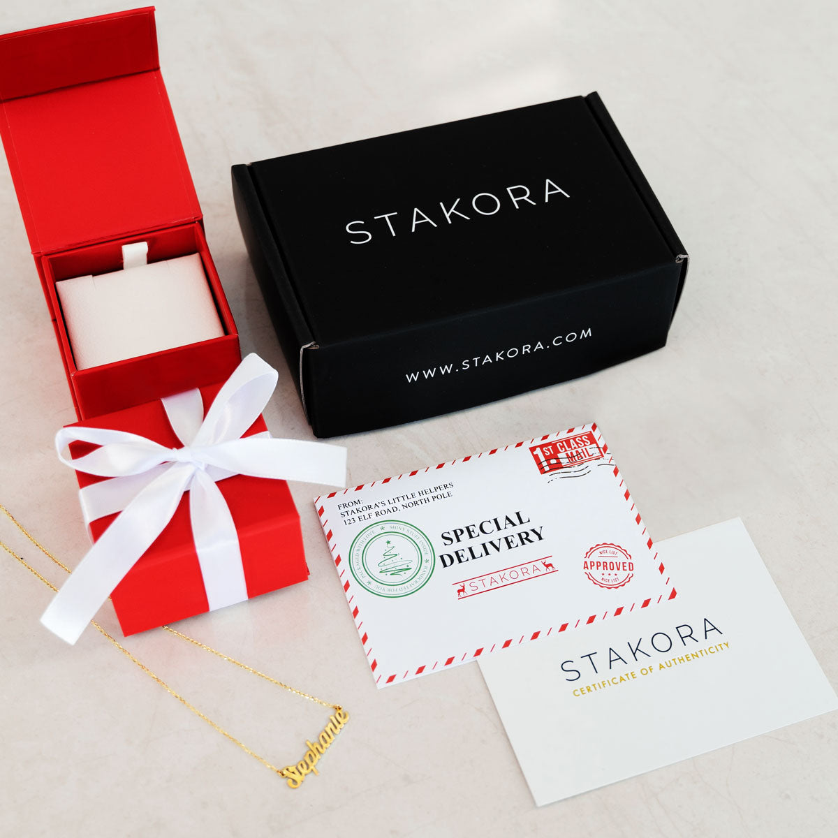 Every order is packaged in our exclusive Holiday packaging, which includes: a beautifully wrapped jewelry box, a Certificate of Authenticity, and a special message card!