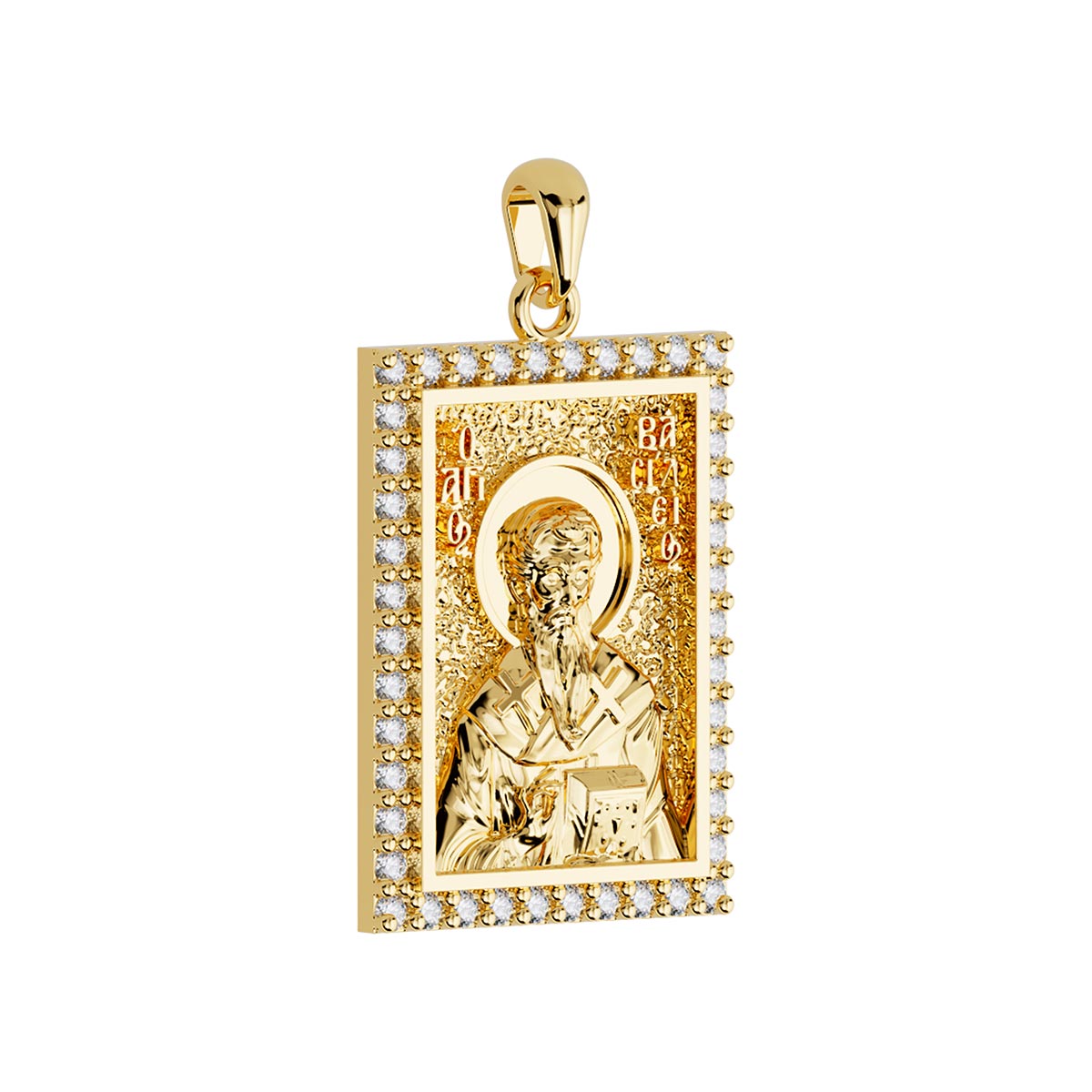 Saint Basil (Vasileios) the Great Orthodox Icon Sculpted Medium Pavé Tag Medal