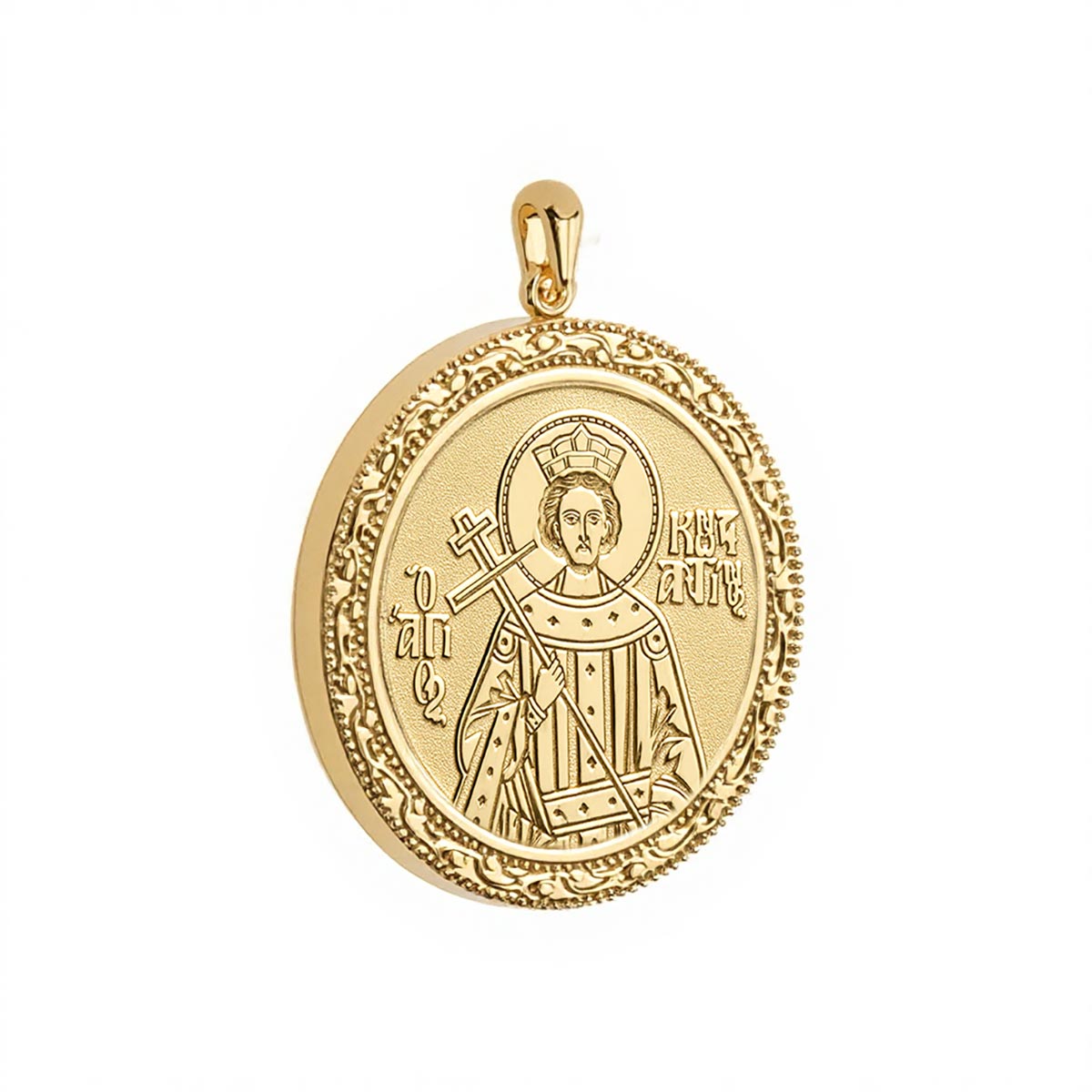 Custom Greek Orthodox Icon Filgree Oval Frame Pendant