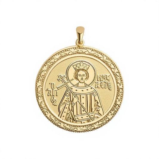Custom Greek Orthodox Icon Filgree Round Frame Pendant
