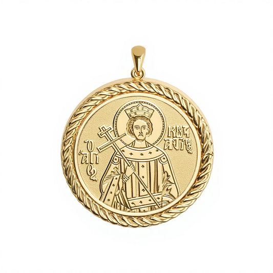 Custom Greek Orthodox Icon Rope Round Frame Pendant
